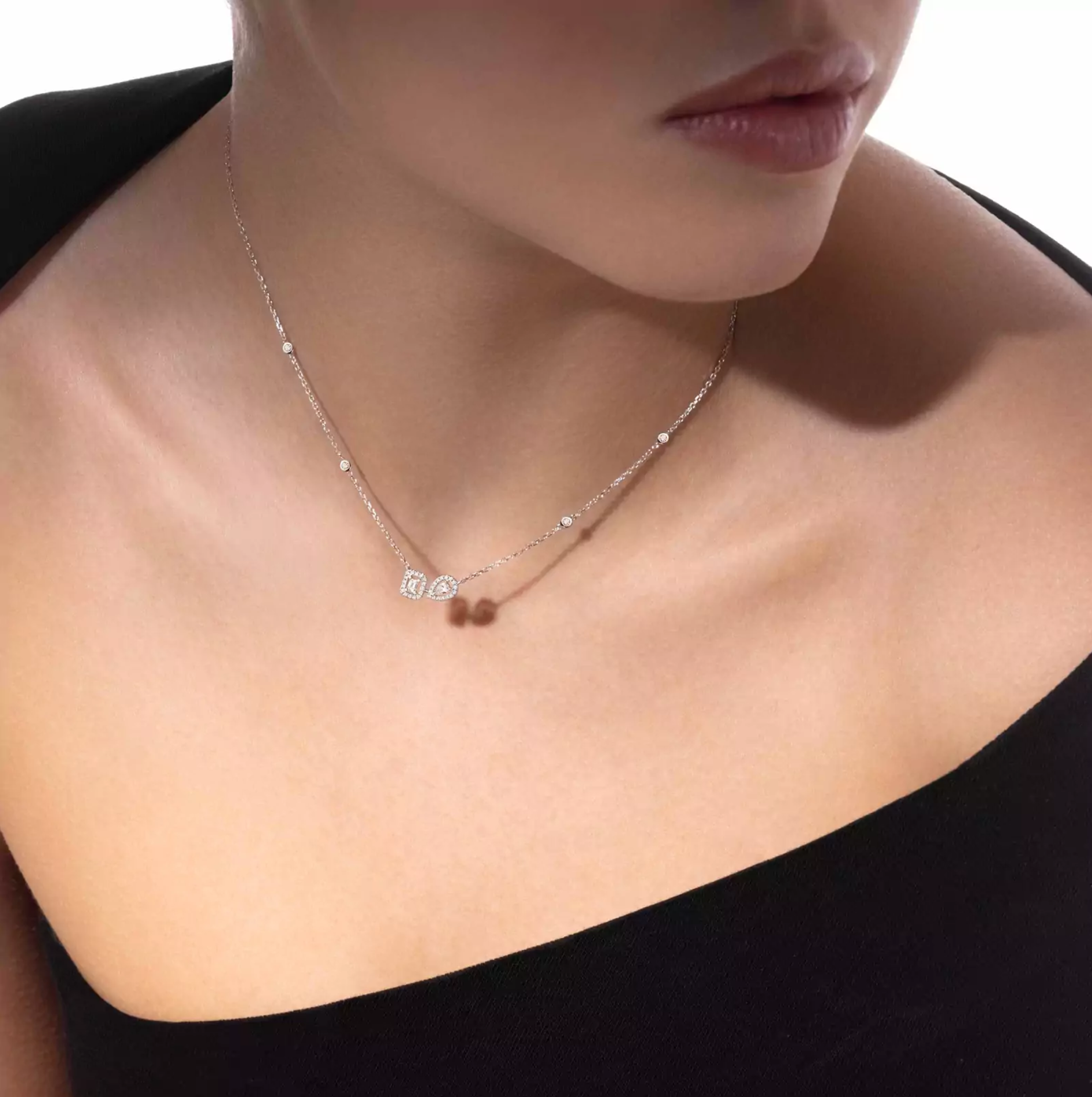 A Messika 18K white gold My Twin Toi & Moi pendant necklace with diamonds.