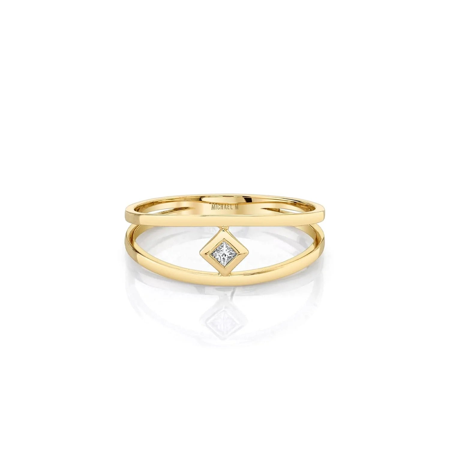A Michael M 'Princess Bezel Double Shank Ring' with diamonds, in 14K yellow gold.