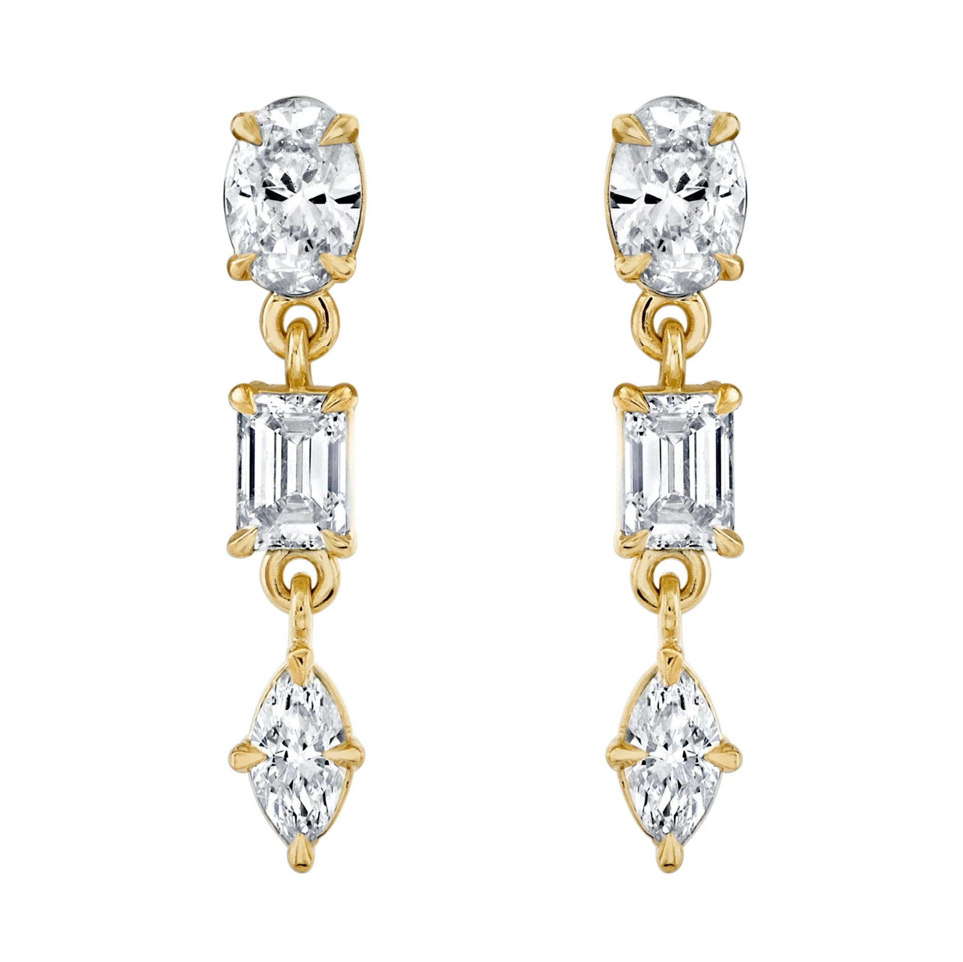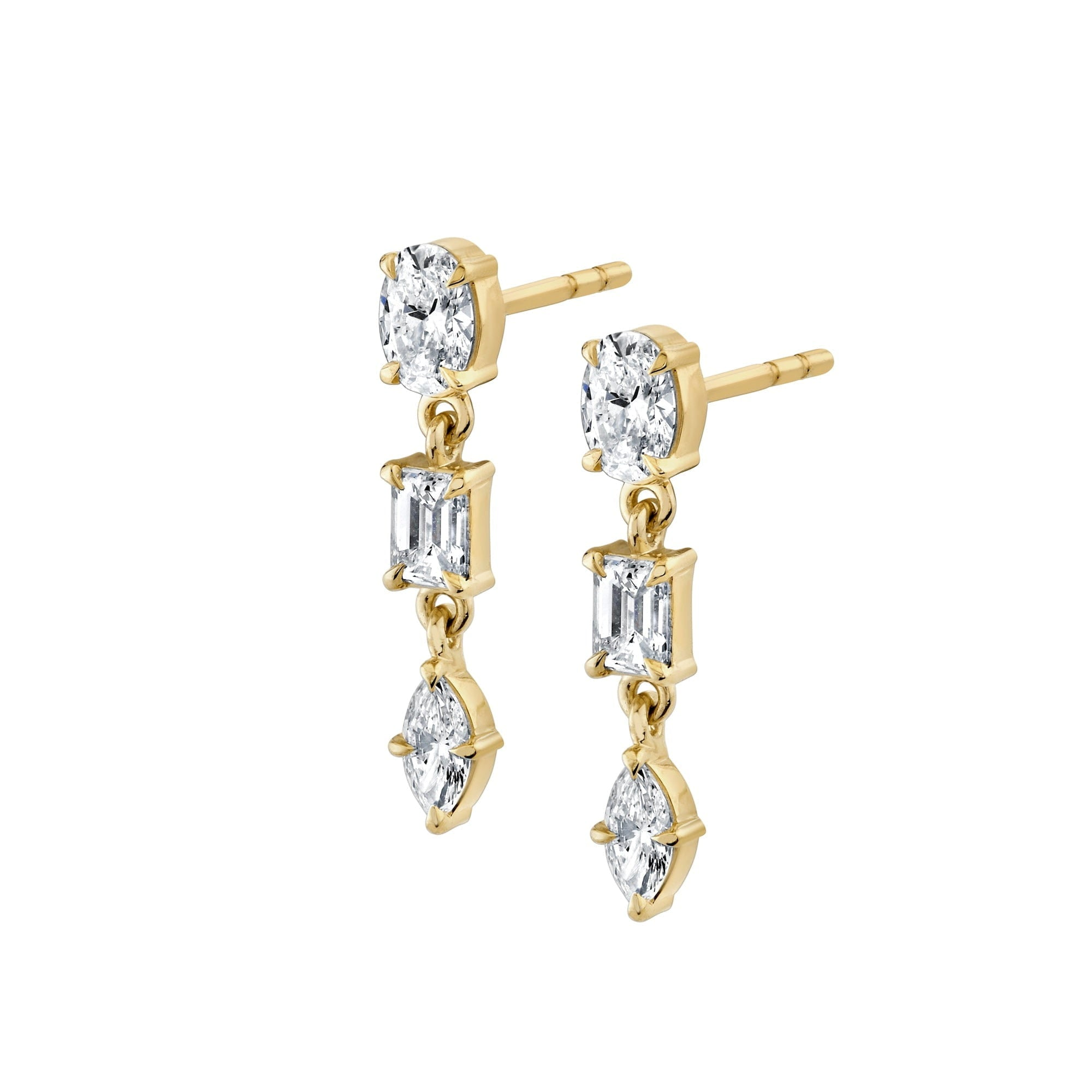 A pair of Michael M 'Montage 3 Stone Drop' earrings with diamonds, in 18K yellow gold.