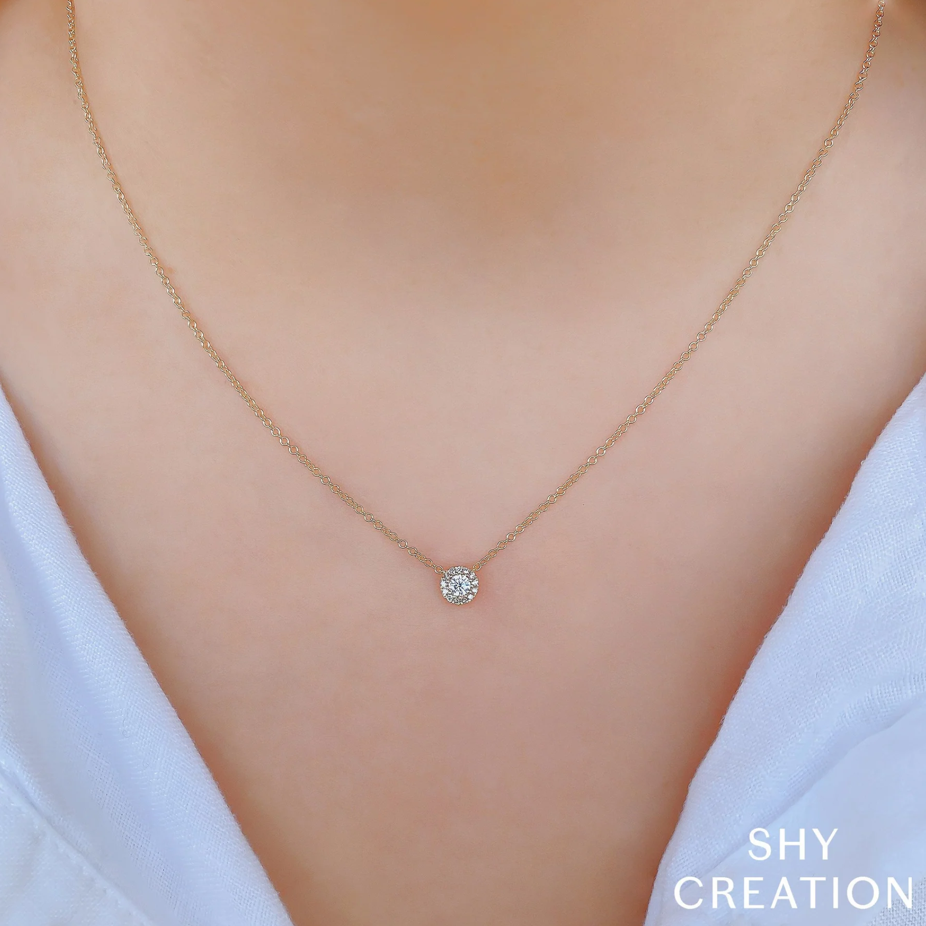 Shy Creation 14K White Gold Diamond Halo Pendant Necklace