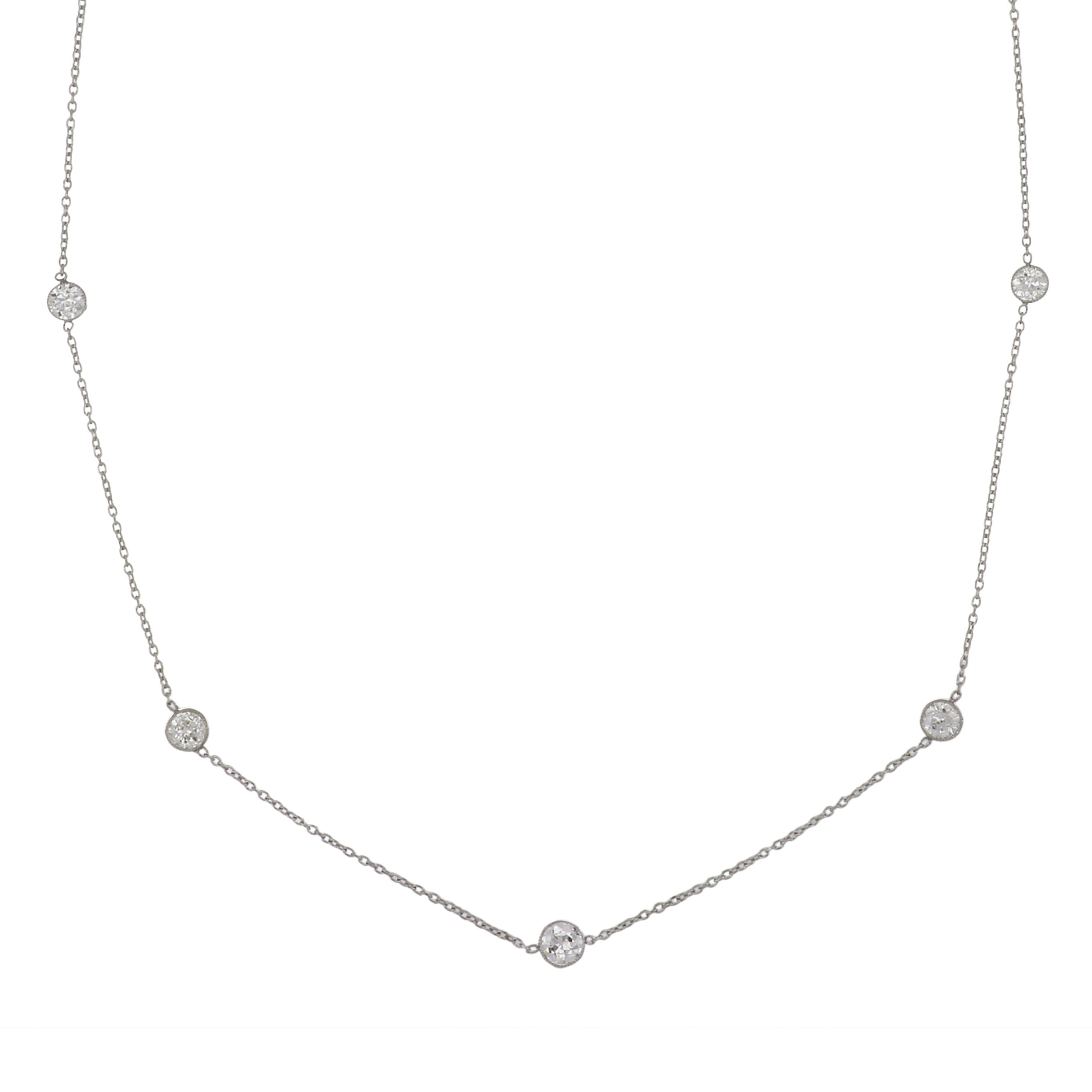 A "Diamonds By The Yard" necklace featuring antique Old European-cut round diamonds set in platinum.