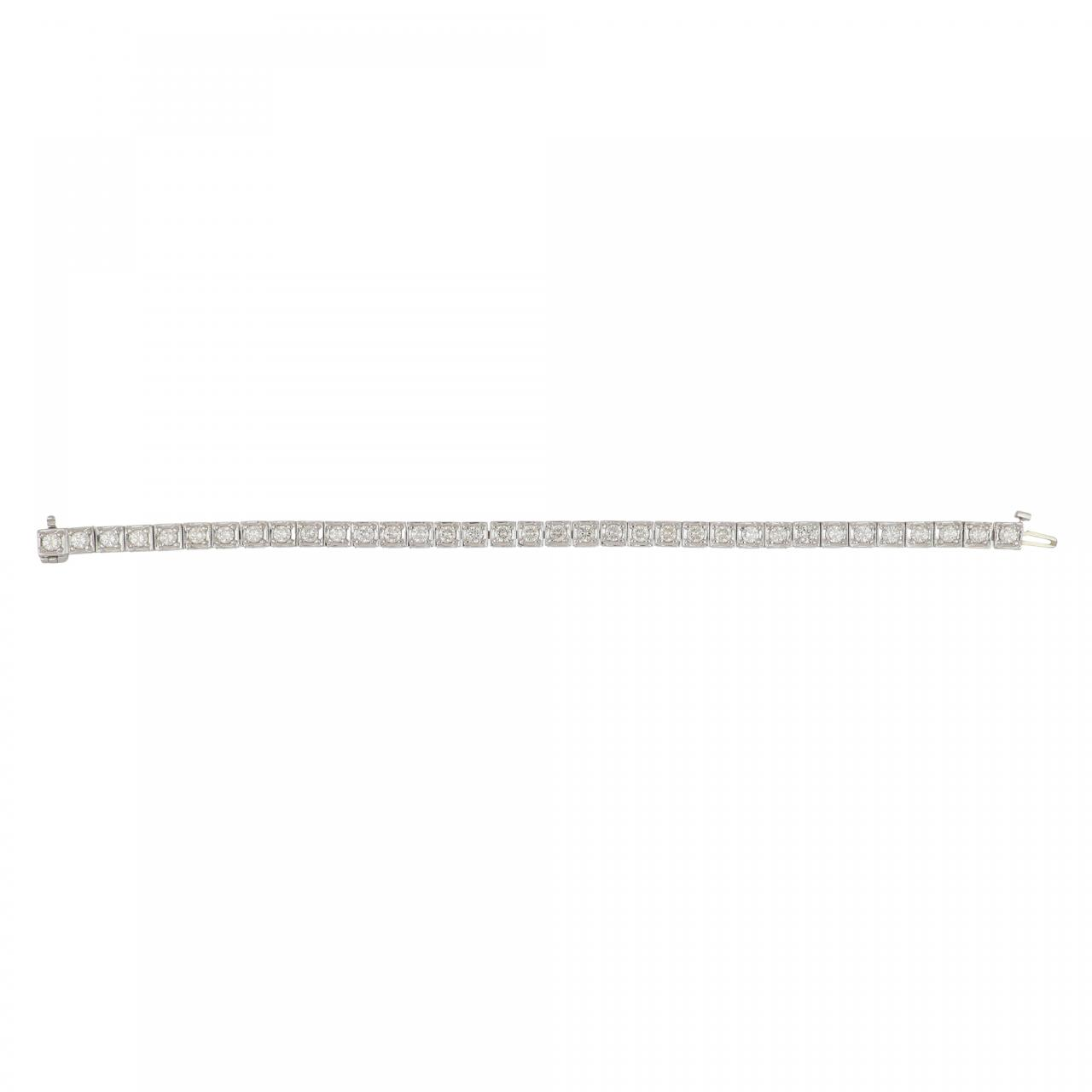 An estate vintage, box set round brilliant-cut diamond line bracelet set in 14K white gold. Circa 1990.