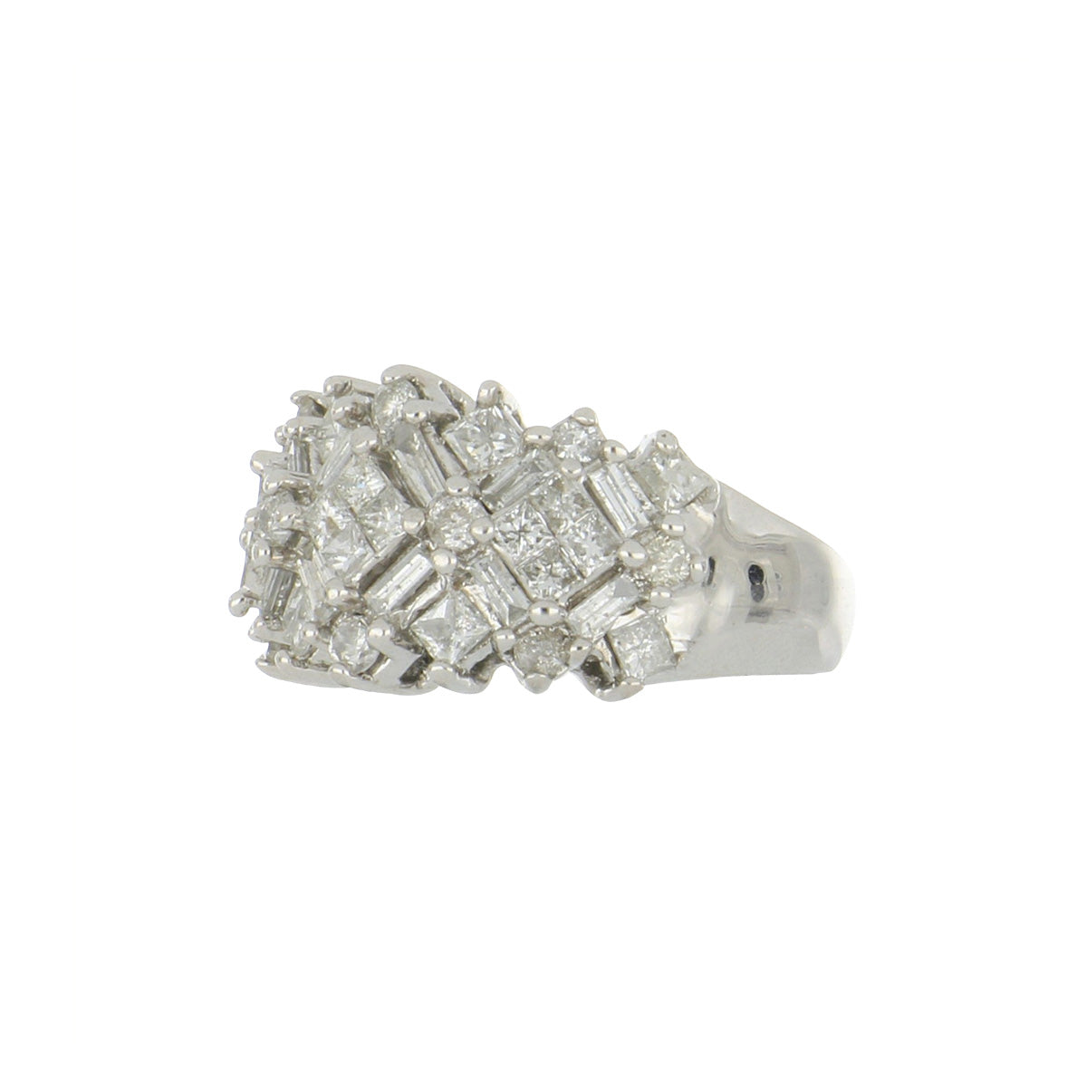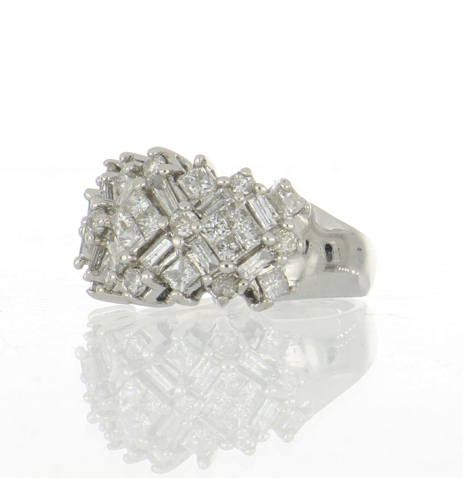 An estate classic modern, geometric lattice band set with princess, round and baguette-cut diamonds in 14k white gold.