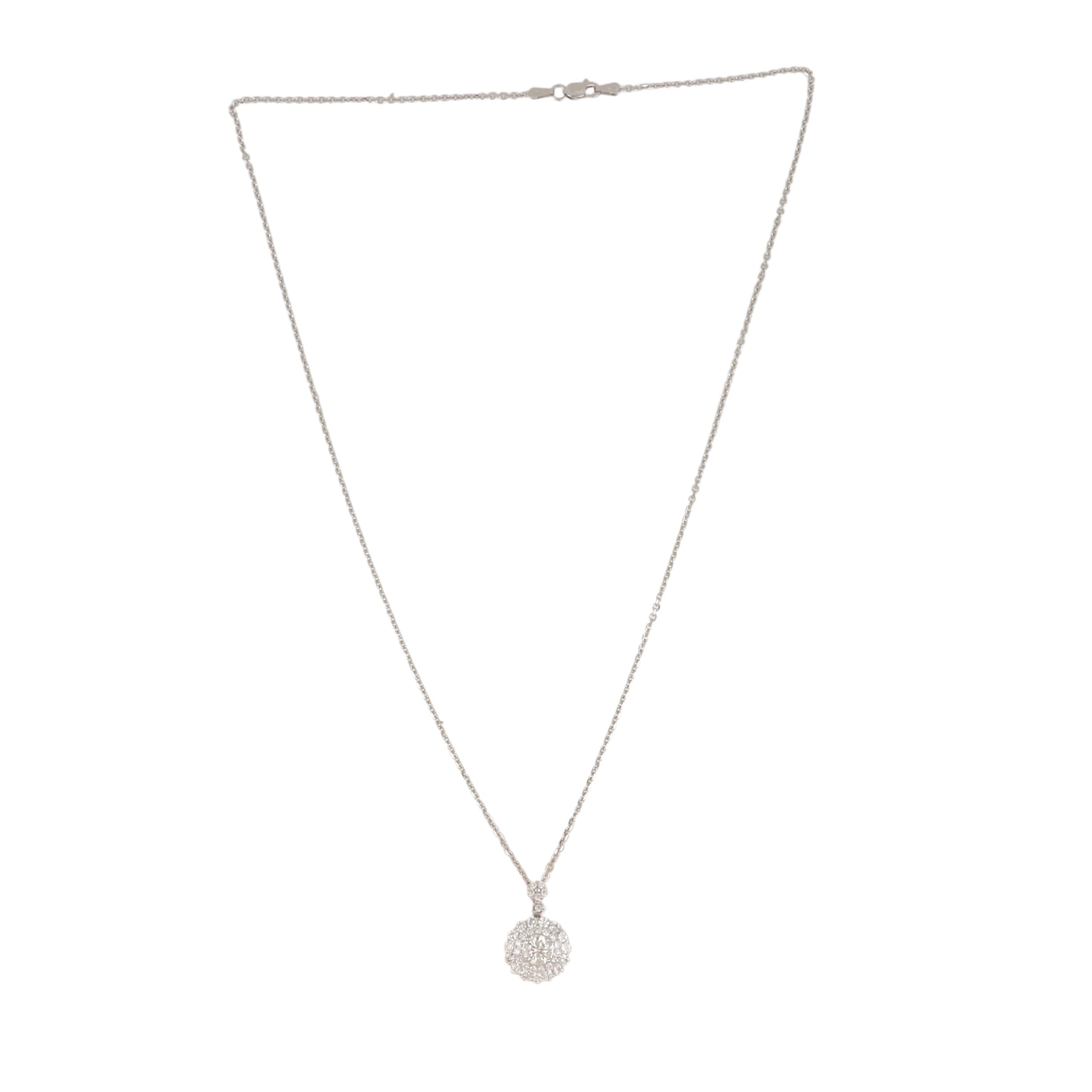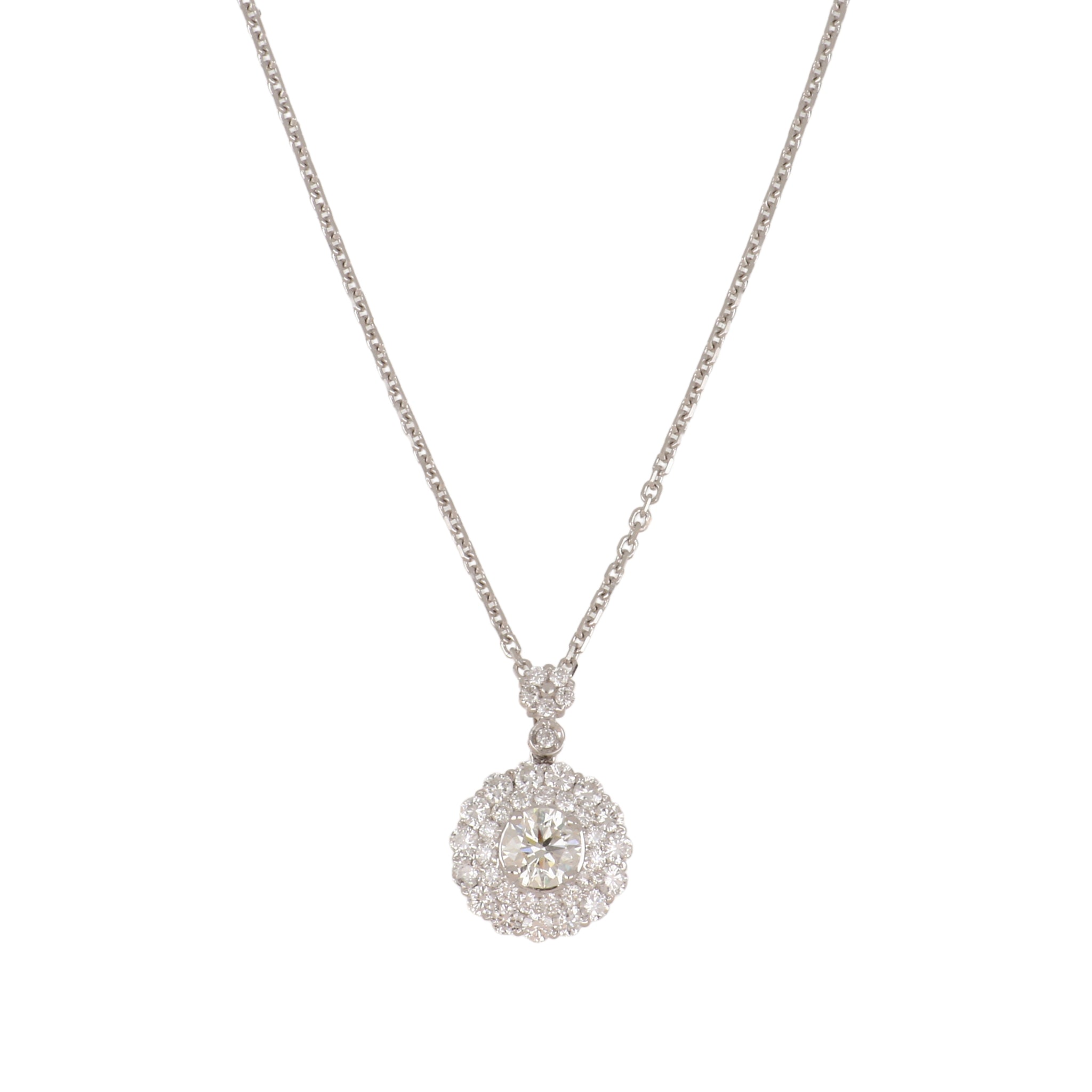 An estate 18K white gold diamond with two diamond halos pendant on a diamond-cut cable chain.