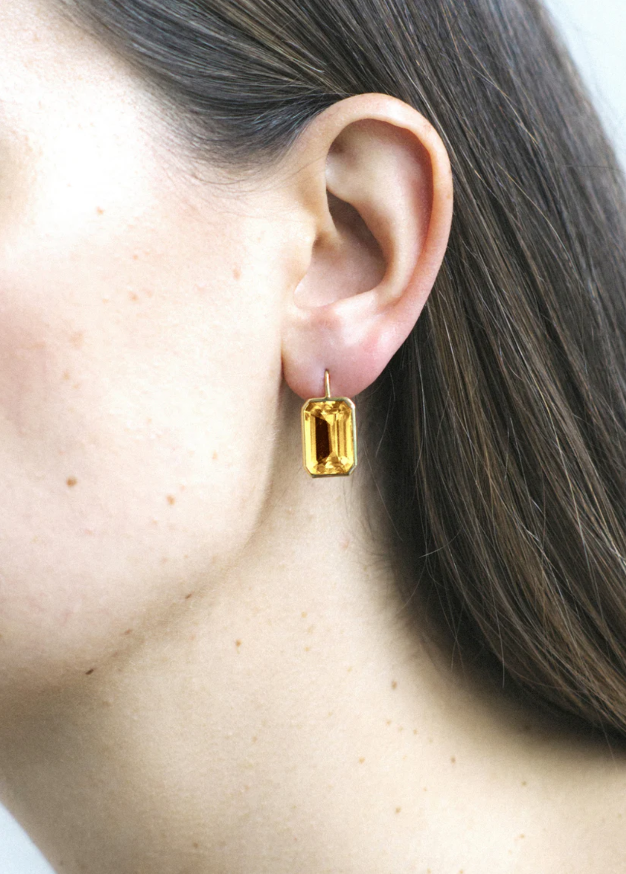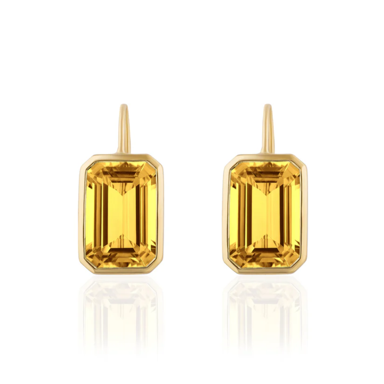 A pair of Goshwara 'Gossip' Collection drop earrings featuring emerald-cut citrines in 18K yellow gold.