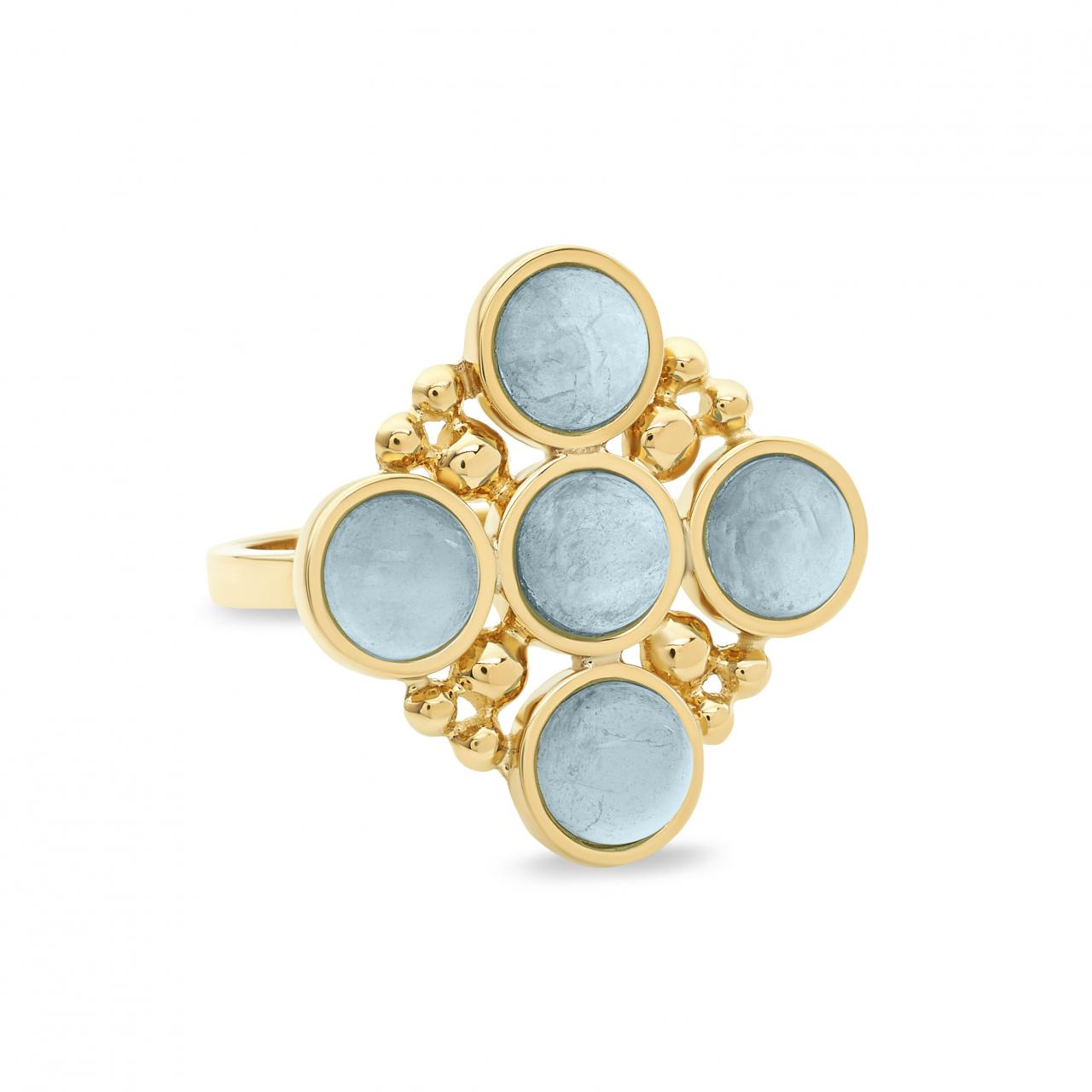 An L. Klein 18K yellow gold Bubbles ring with cabochon aquamarine. Made in Italy.Official RetailerSize: 7.00