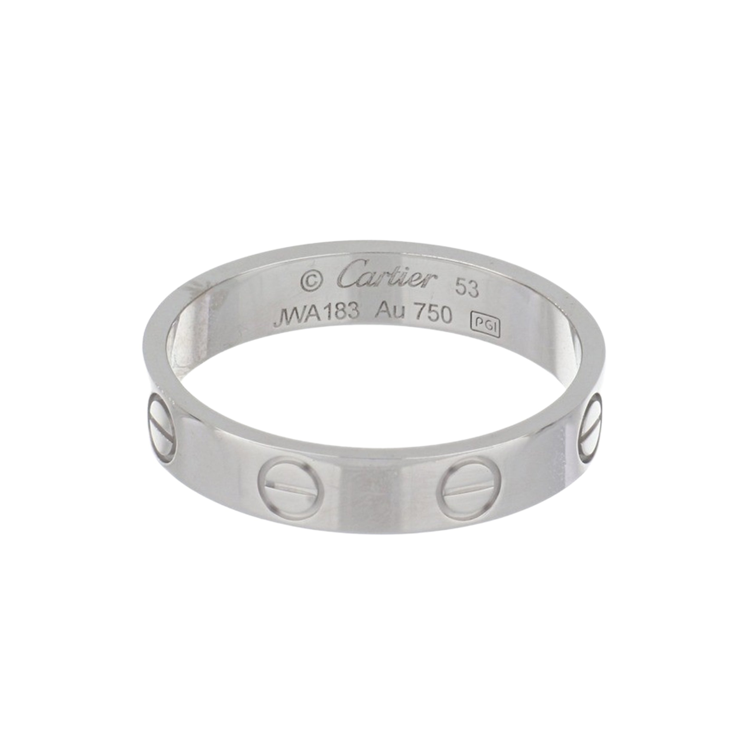An estate Cartier 'Love' ring in 18K white gold. Accompanied with the box, original receipt, and certificate of authenticity. Circa 2020.
