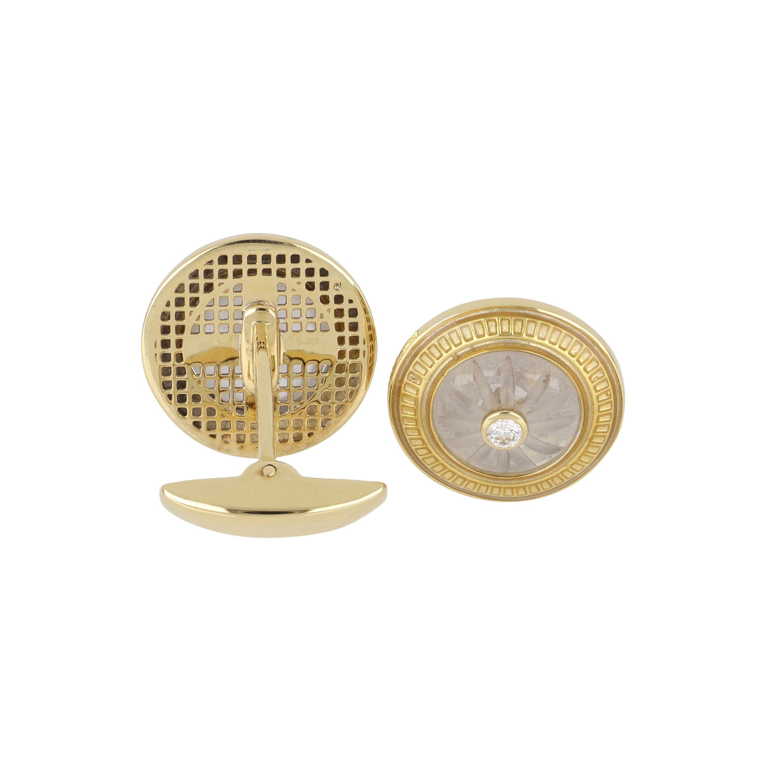 Deakin & Francis 18K Gold Carved Rock Crystal Cufflinks
