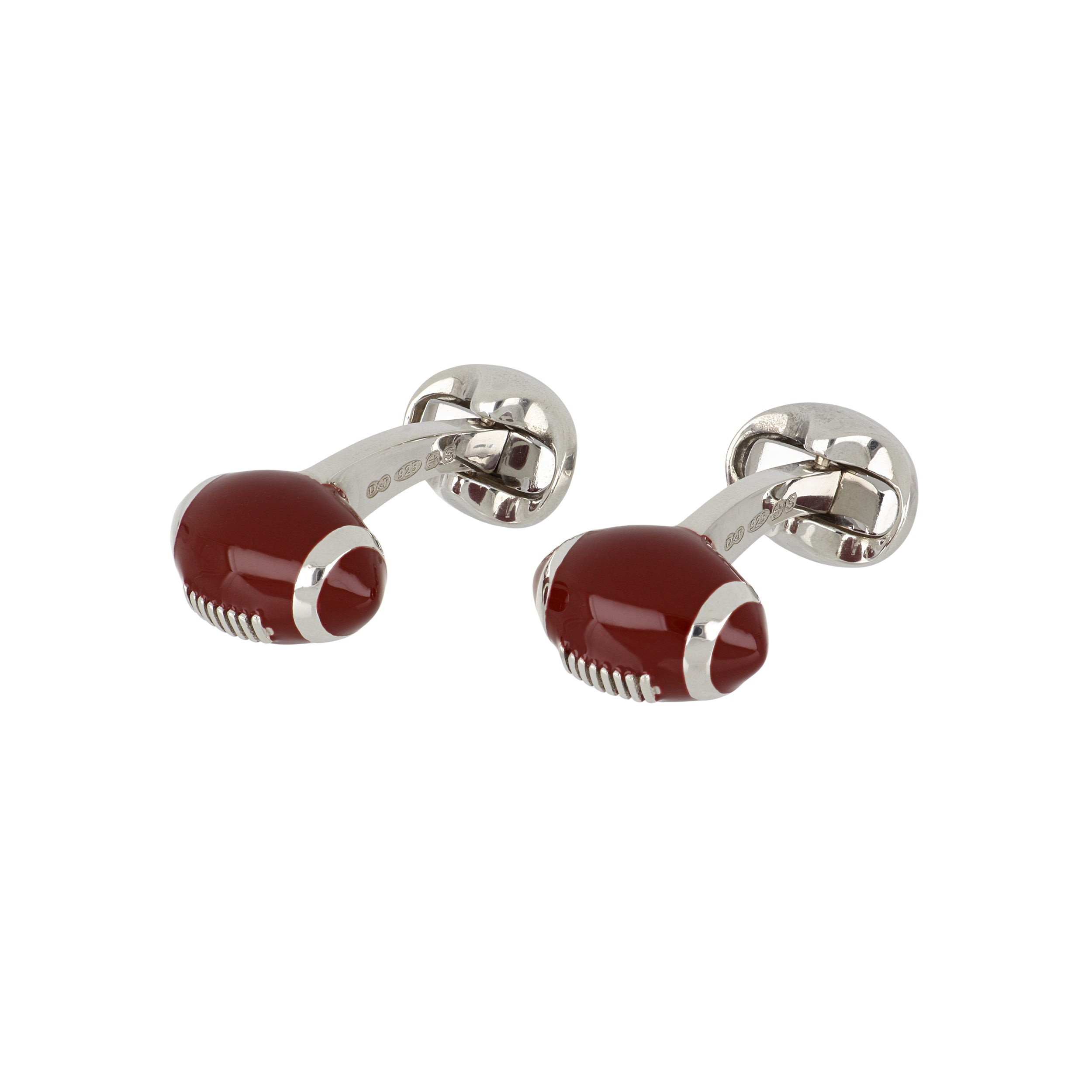 A new pair of Deakin & Francis sterling silver enameled american football cufflinks.