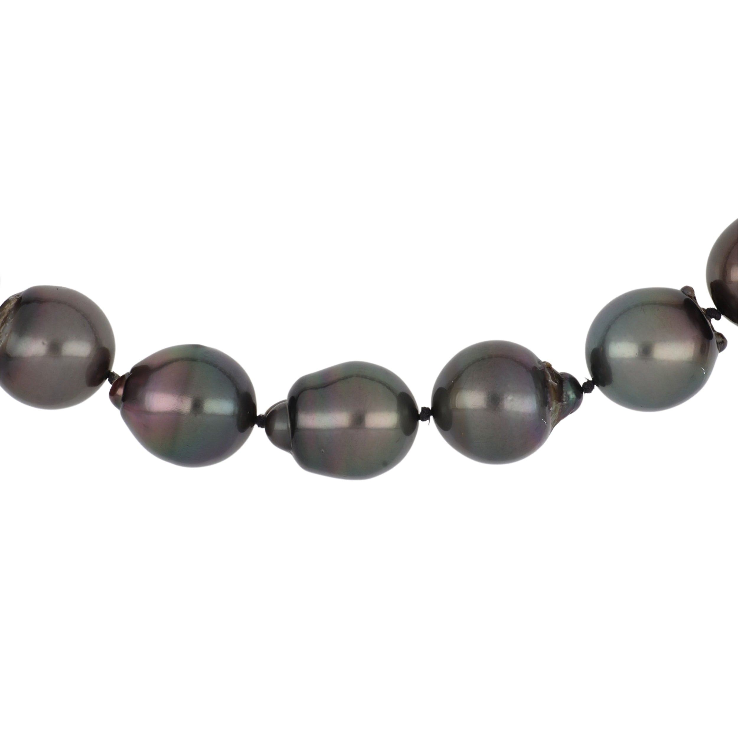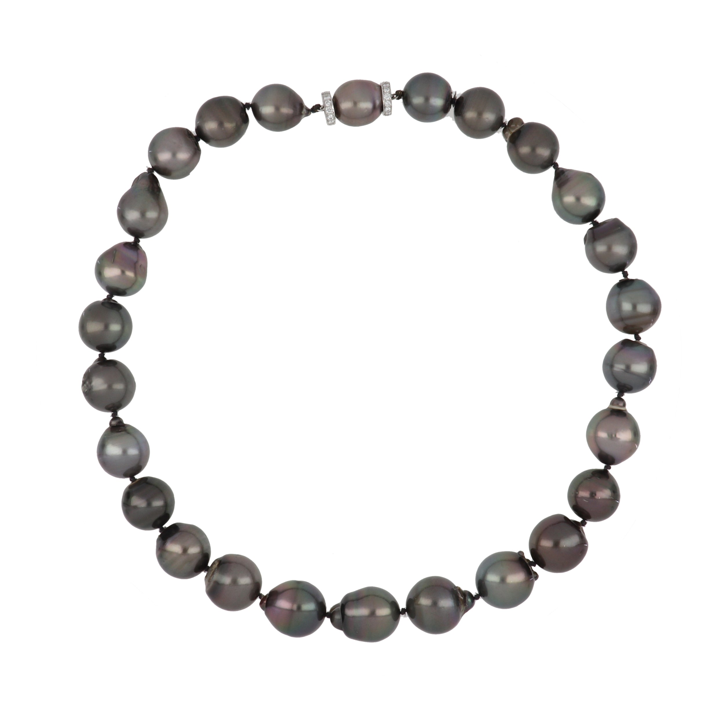 A vintage David Webb baroque Tahitian pearl necklace with diamond accents, set in platinum from the "Twilight" collection. Circa 1990.