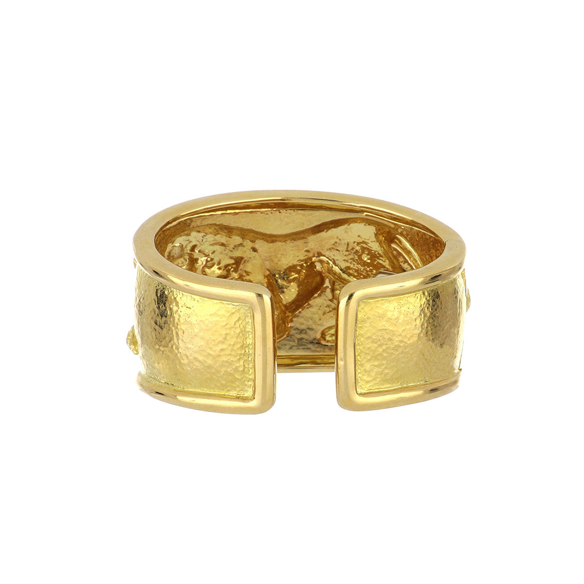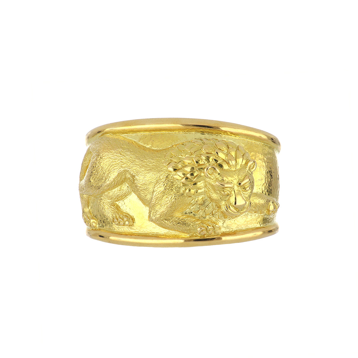 A vintage David Webb lion cuff bracelet in 18k yellow gold with a hammered texture. Circa 1990.Vintage & Estate Collection