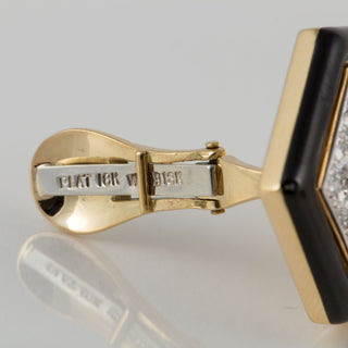 Estate David Webb Two-Tone Cabochon Emerald, Black Enamel & Diamond Earrings