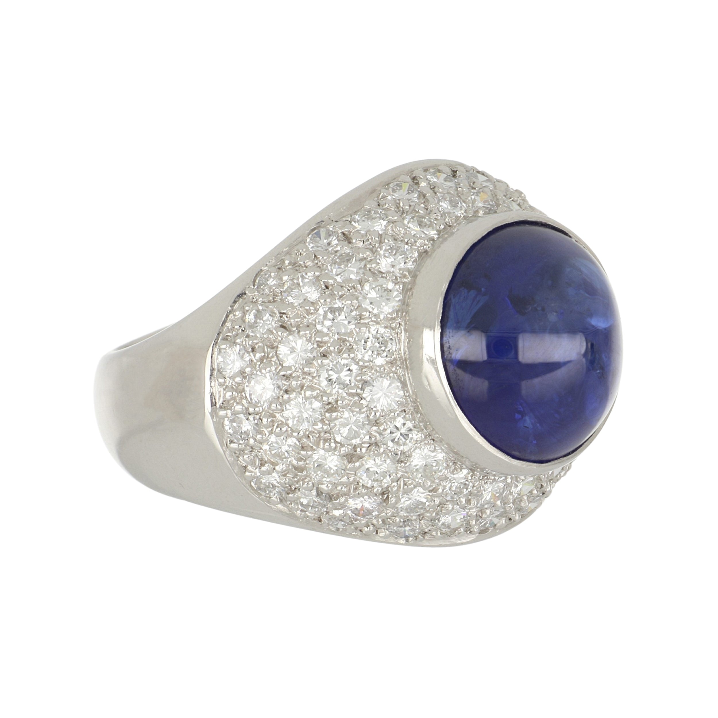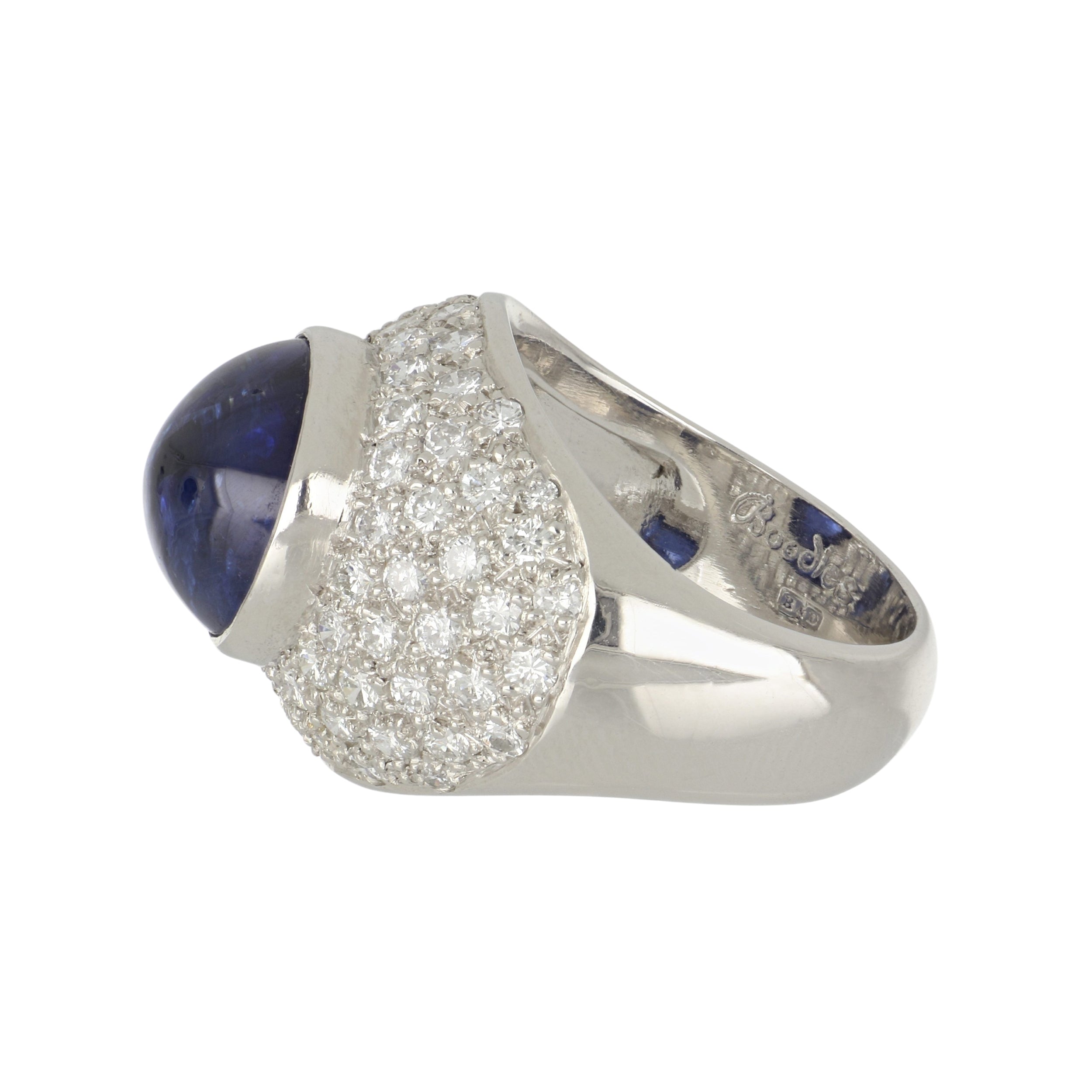 Estate Boodles 18K Cabochon Sapphire Cocktail Ring with Diamonds
