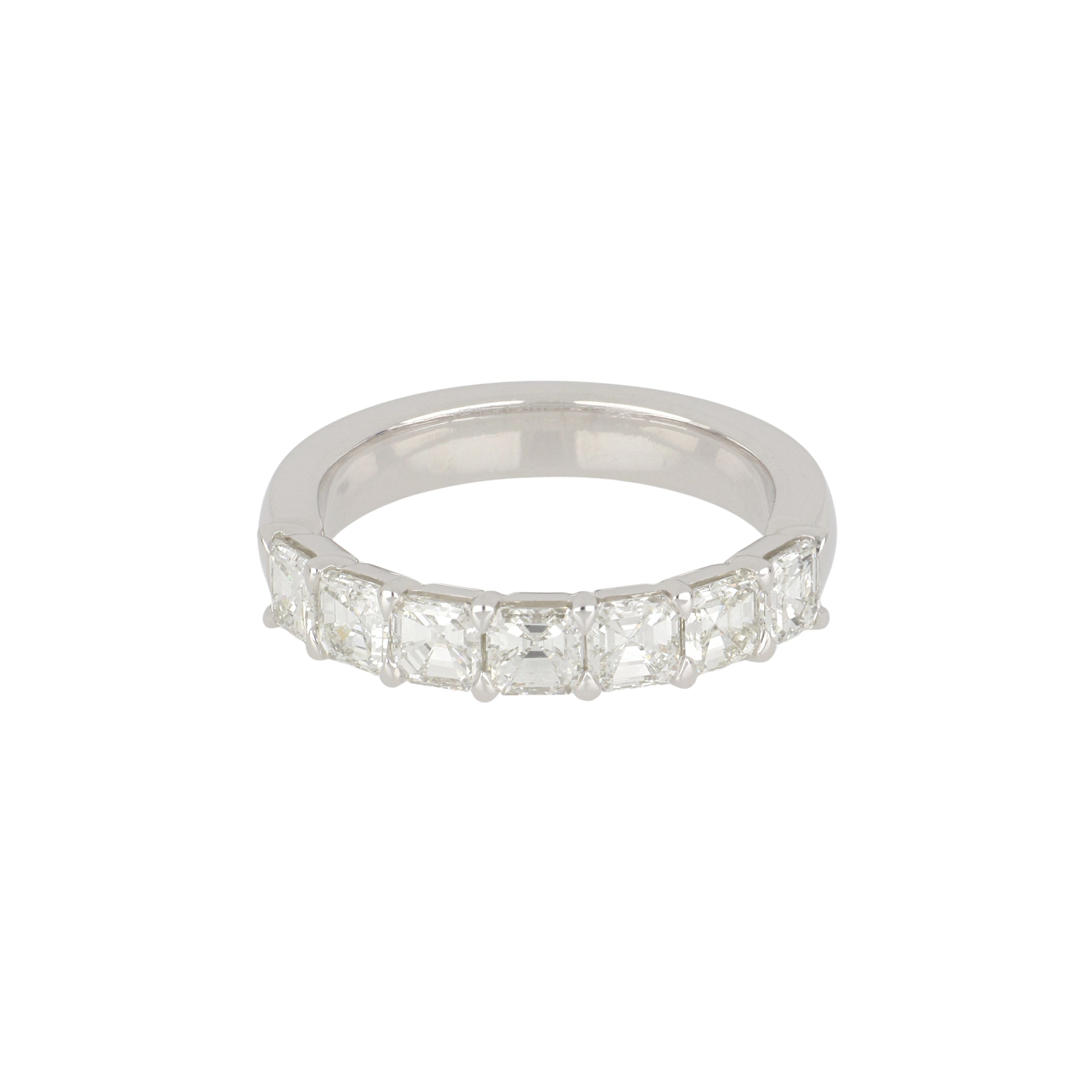 A seven-stone asscher-cut diamond buttercup band, set in platinum.