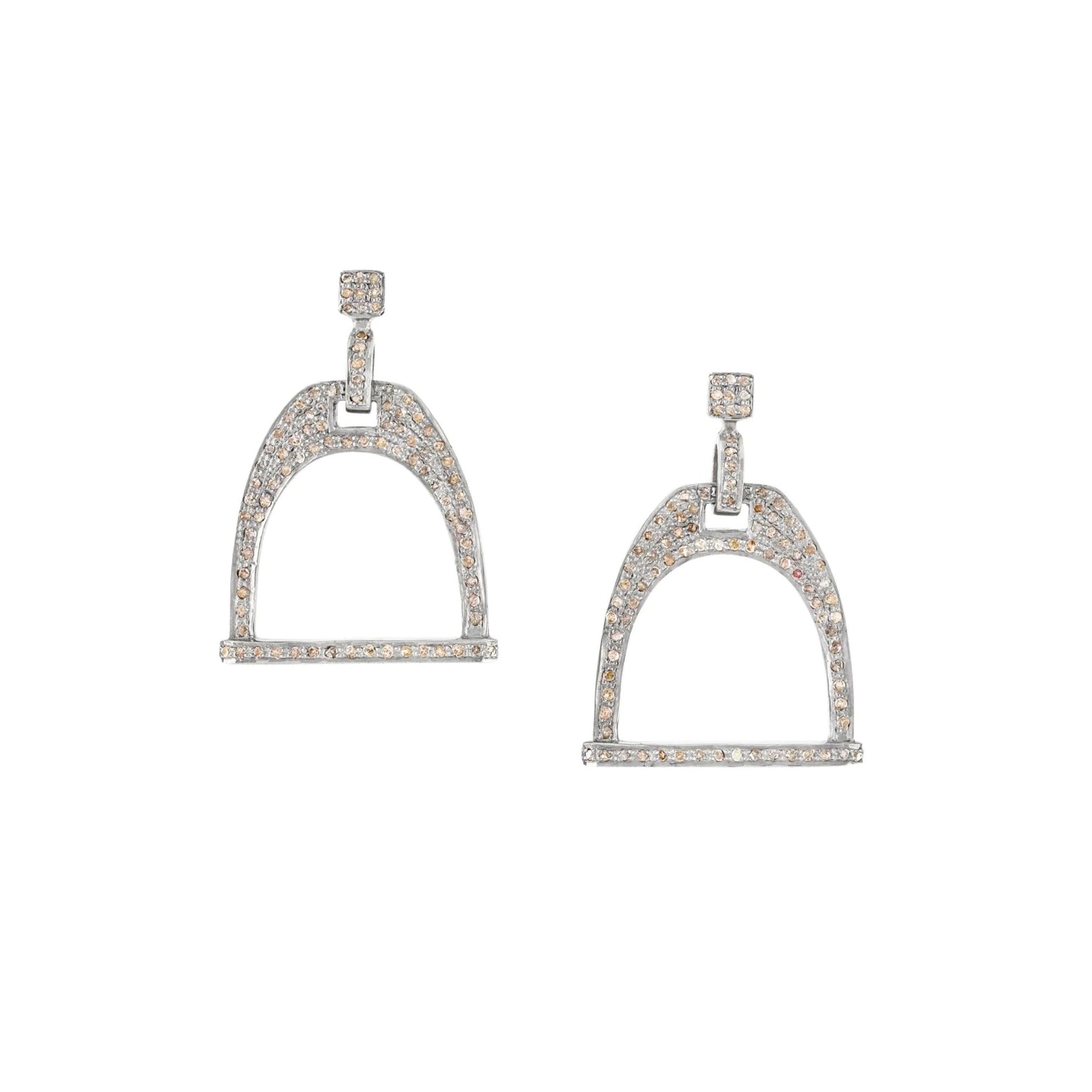 A pair of Vincent Peach sterling silver equestrian stirrup earrings with pavé diamonds.
