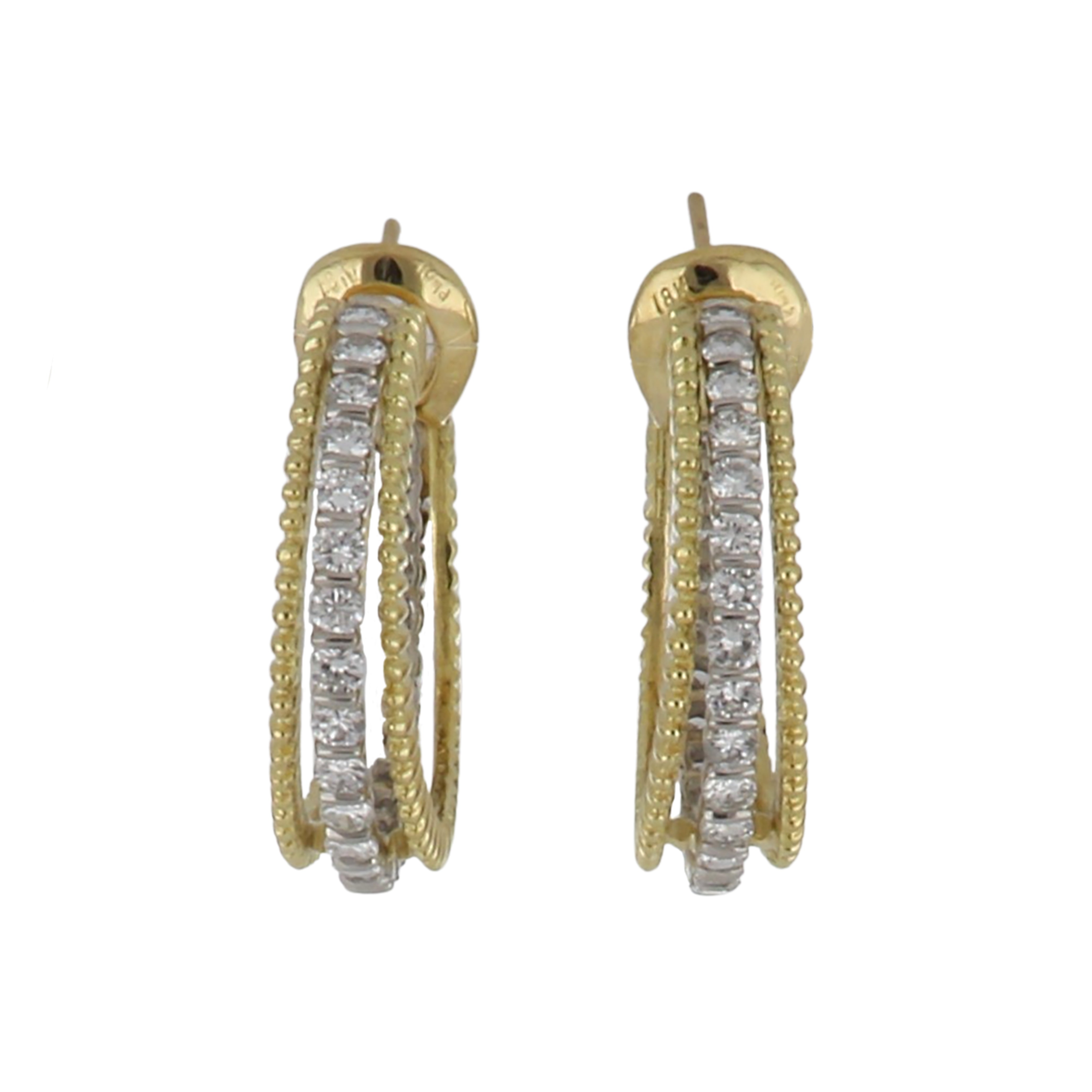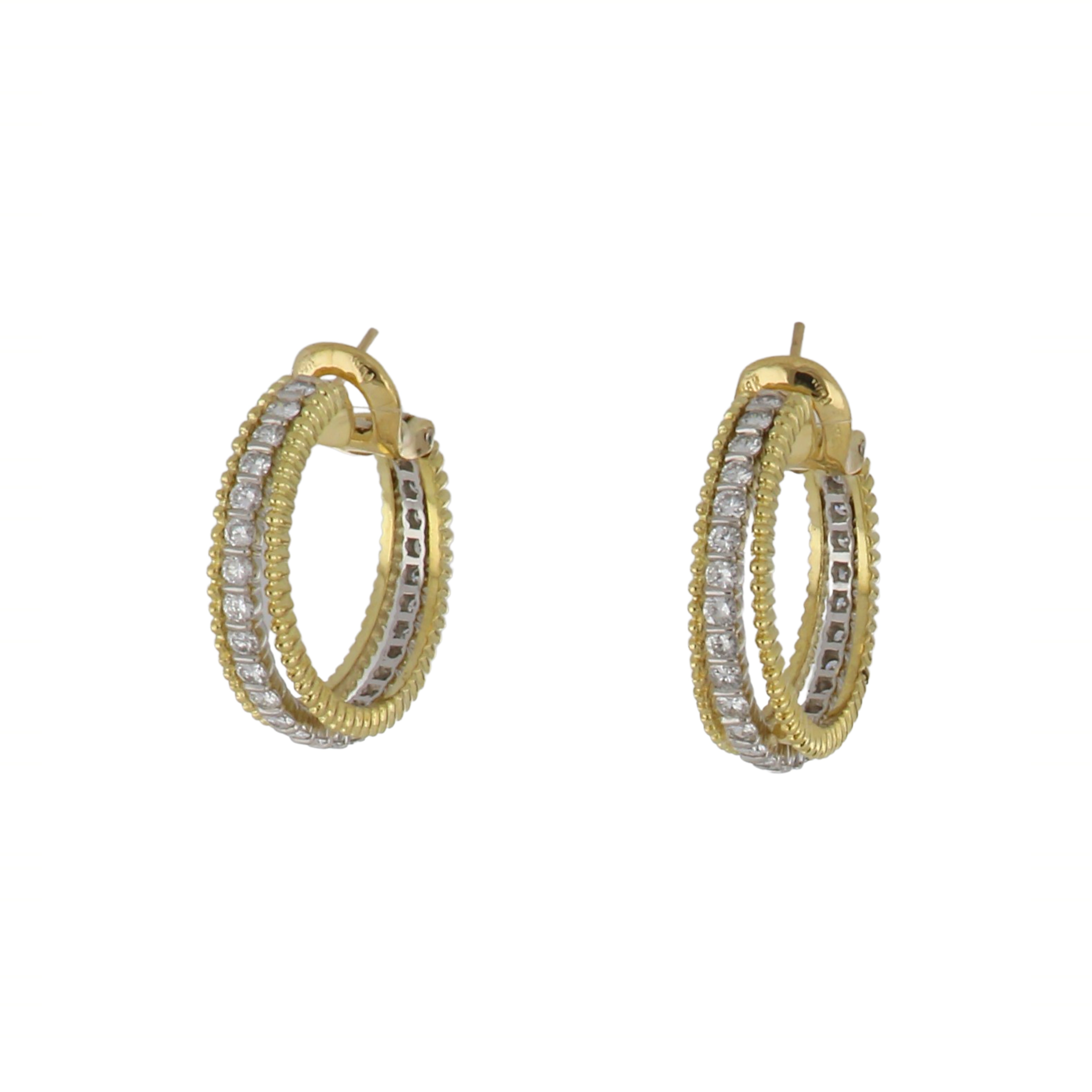 A pair of vintage Tiffany & Co. diamond hoop earrings, set in platinum and 18K yellow gold. Dated 1976.