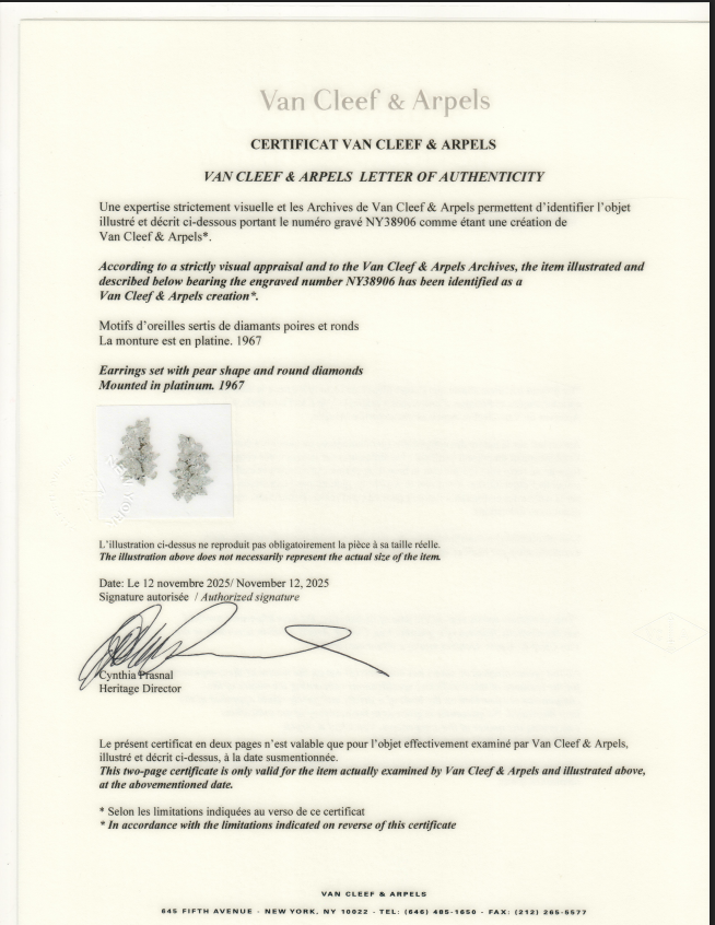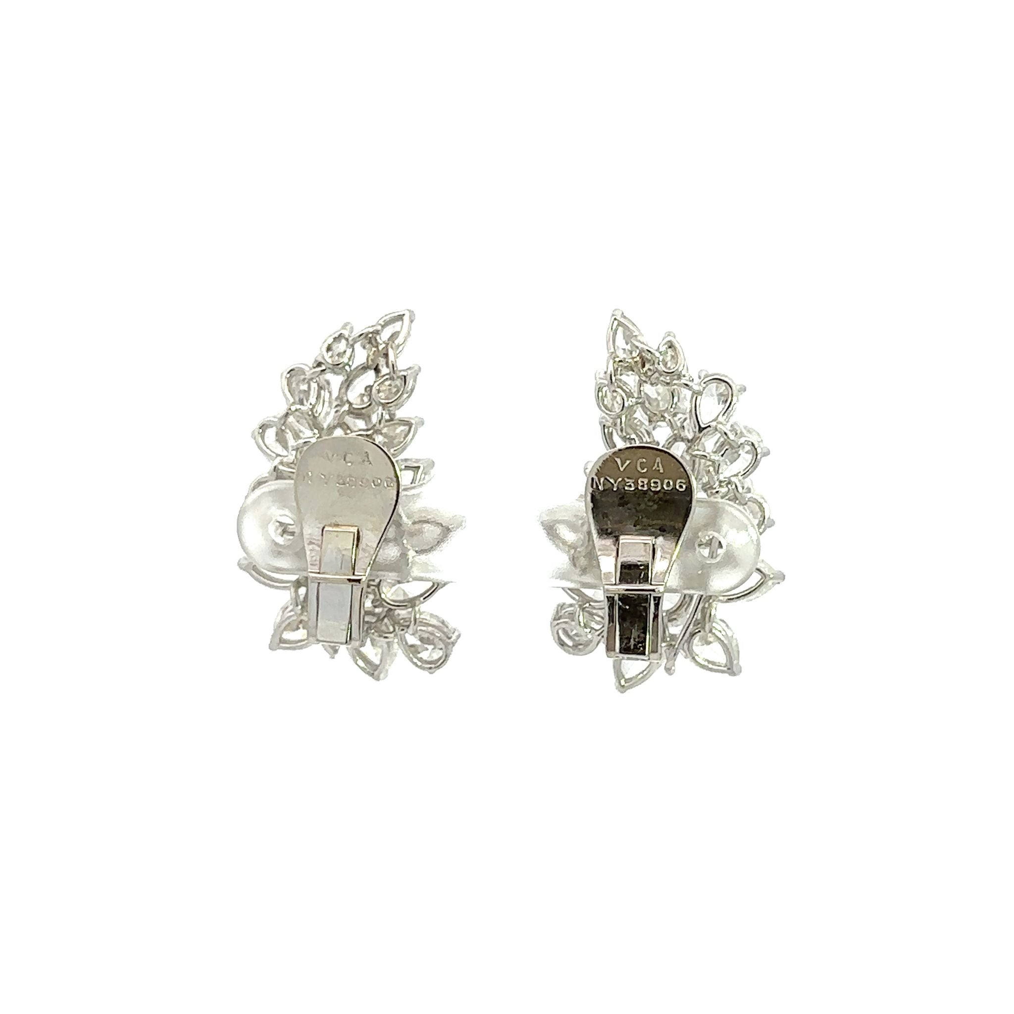 A pair of vintage Van Cleef & Arpels pear shape and round brilliant-cut diamond cluster earrings, set in platinum, including a wire for an earring drop. The earrings have been verbally authenticated by VCA and are included in the archives. Signed: VCA NY, circa 1980.