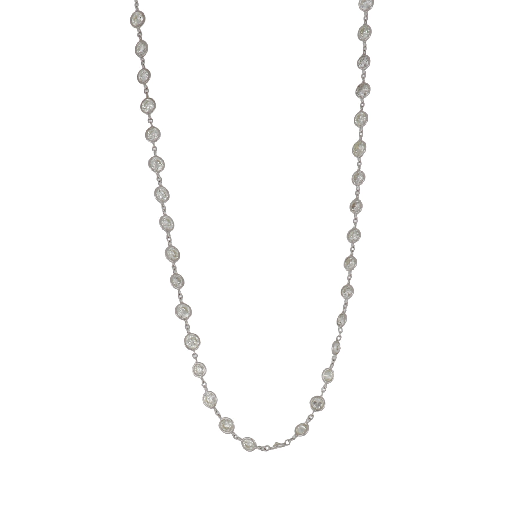 An estate diamond by the yard necklace with Old European and transitional round brilliant-cut diamonds, set in platinum.