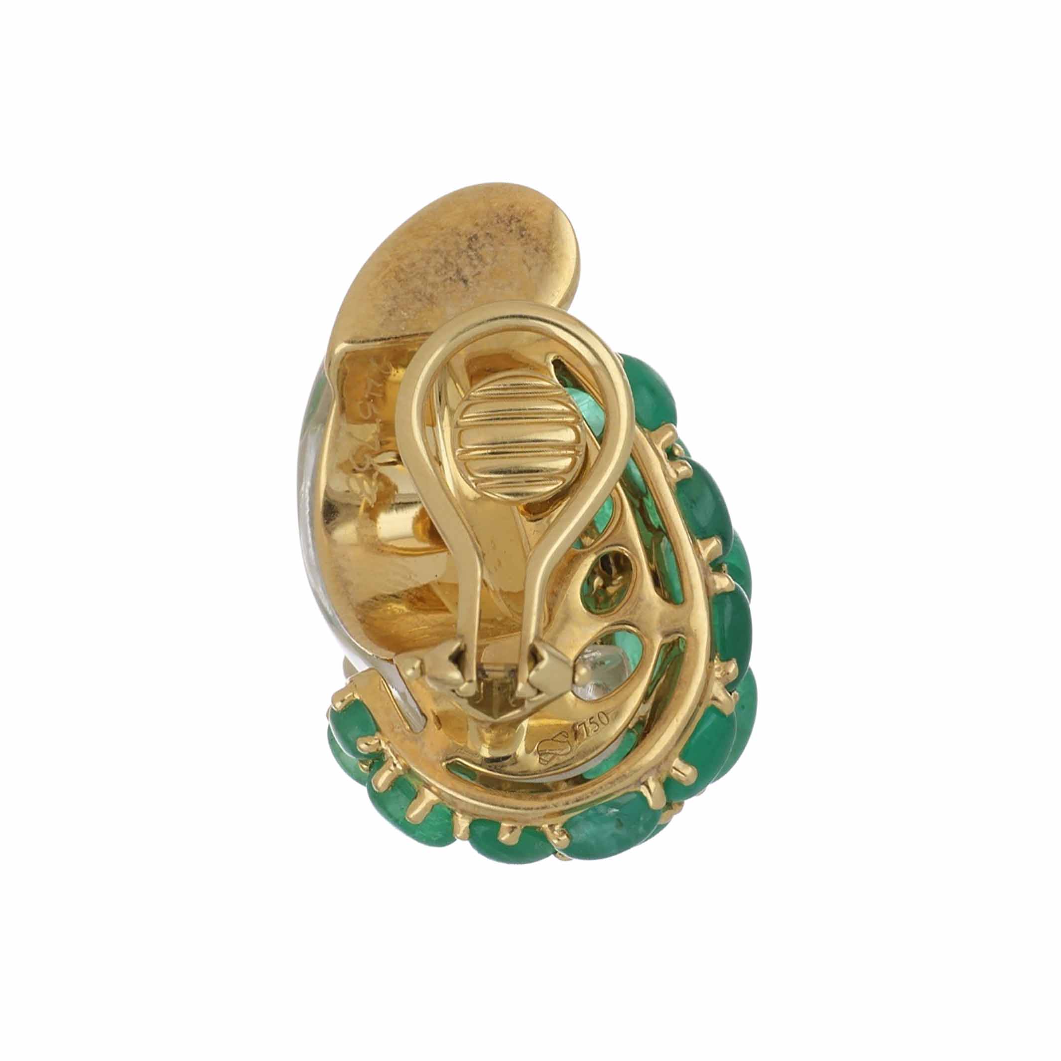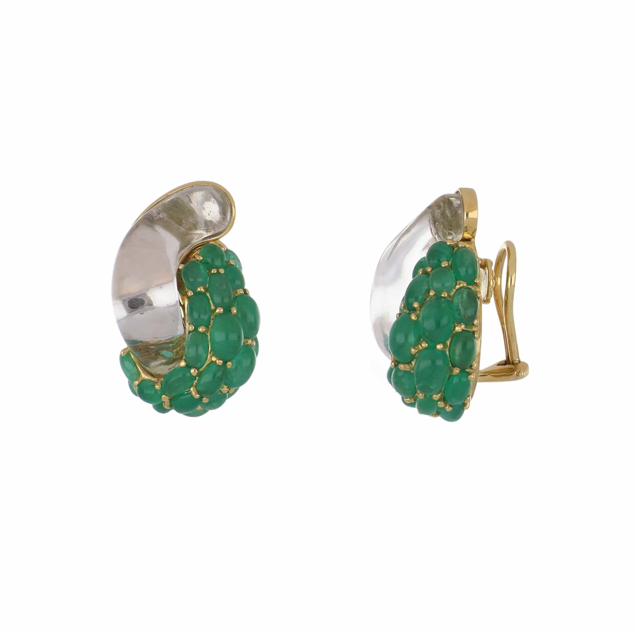 A pair of Seaman Schepps half link earrings with rock crystal and cabochon emeralds, set in 18K yellow gold .