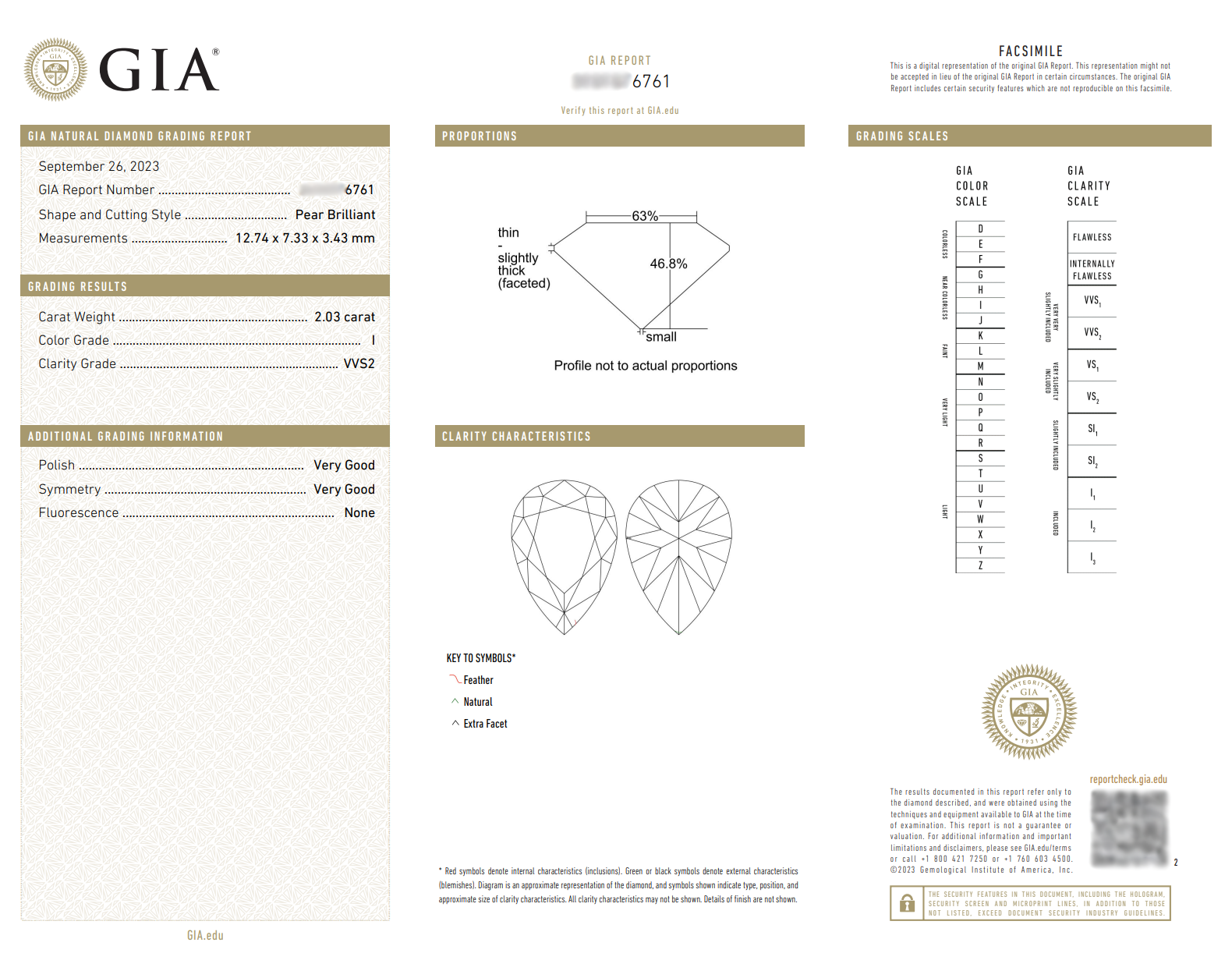 Center diamond: 2.03 total carat weight, GIA, I color, VVS2 clarity