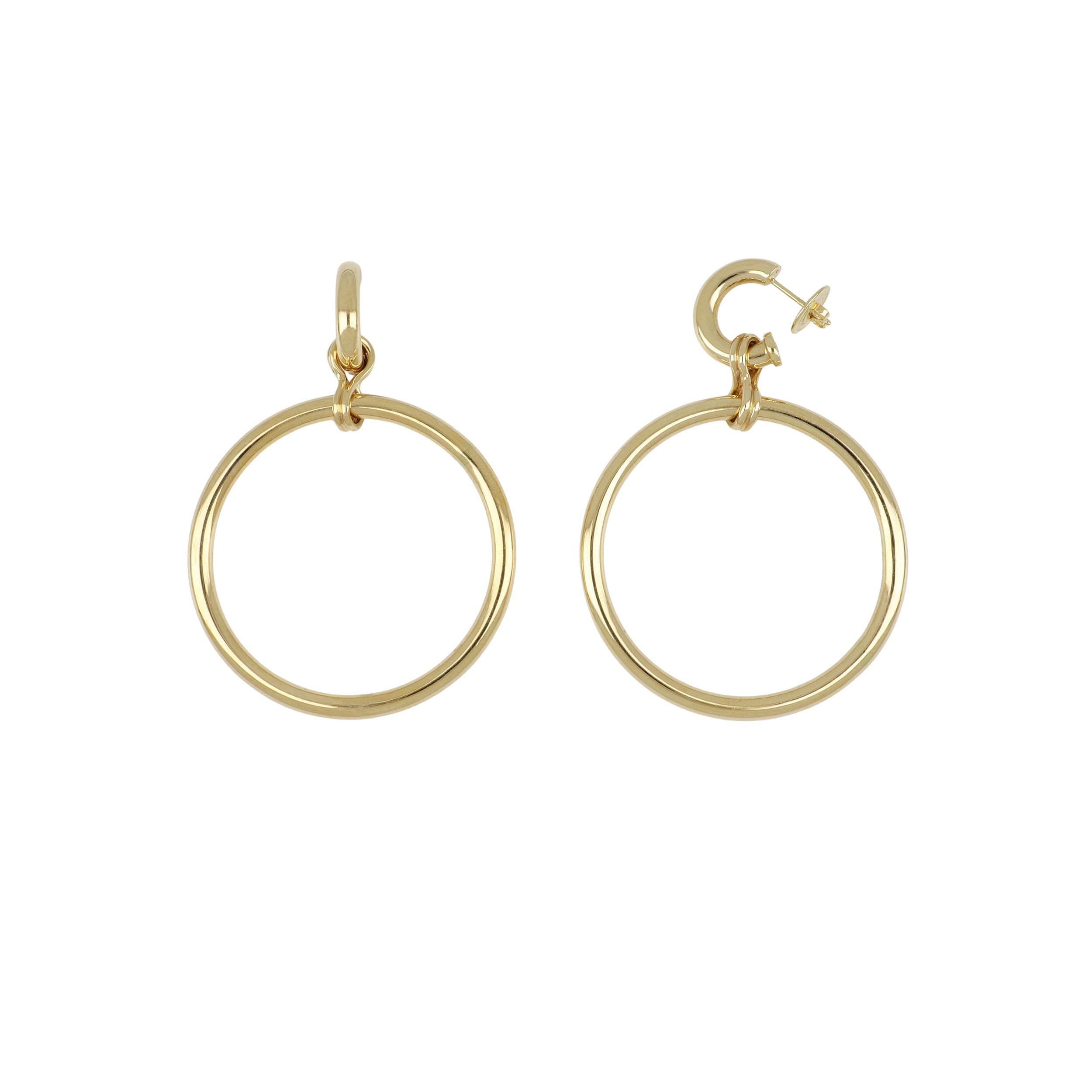 A pair of Antonio Papini 18K yellow gold double hoop drop earrings.