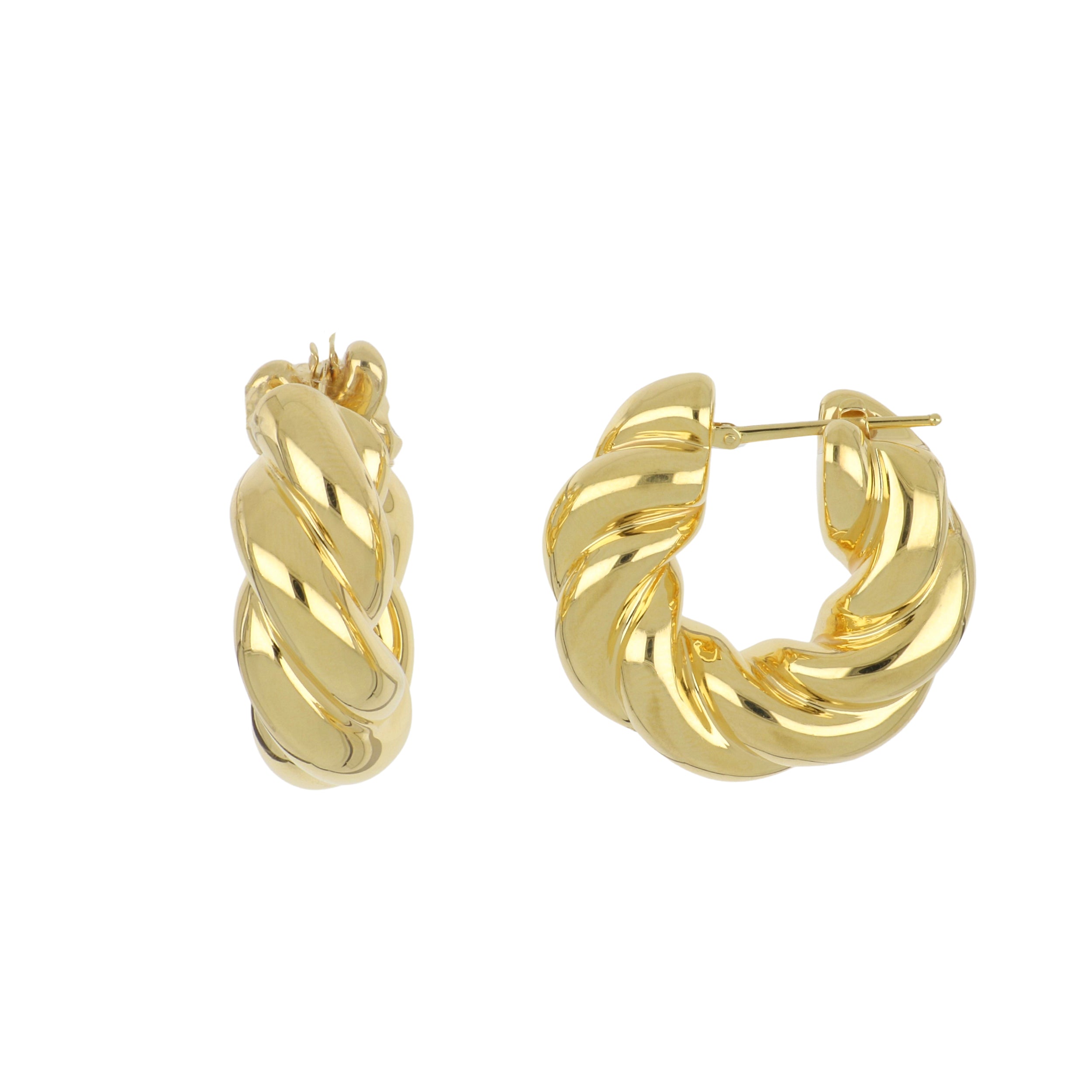 A pair of Antonio Papini 18K yellow gold twisted hoop earrings.
