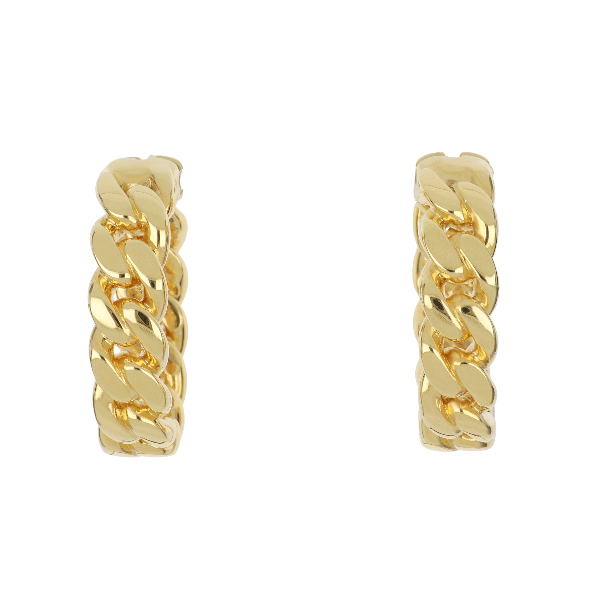 A pair of Antonio Papini 18K yellow gold curb chain hoop earrings.