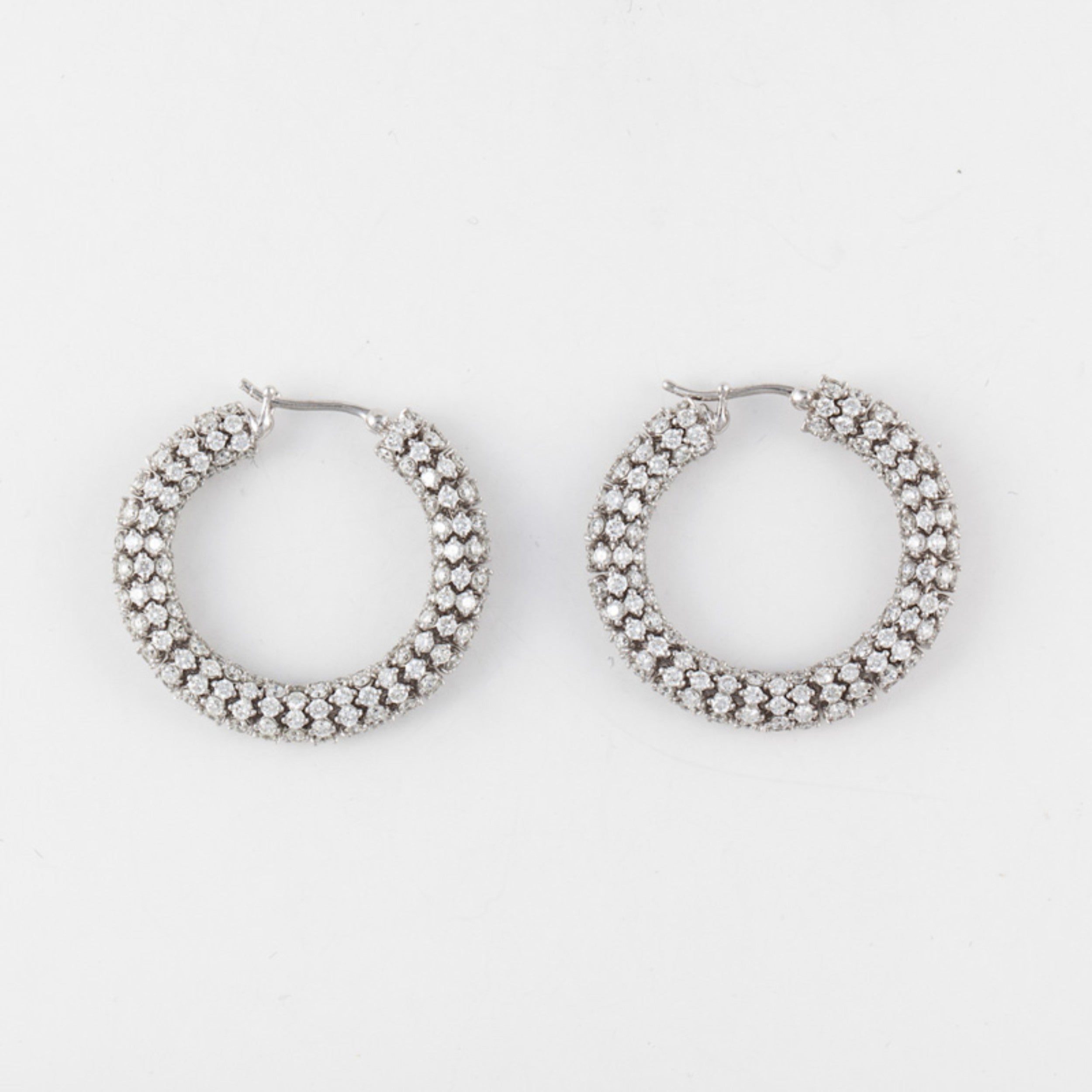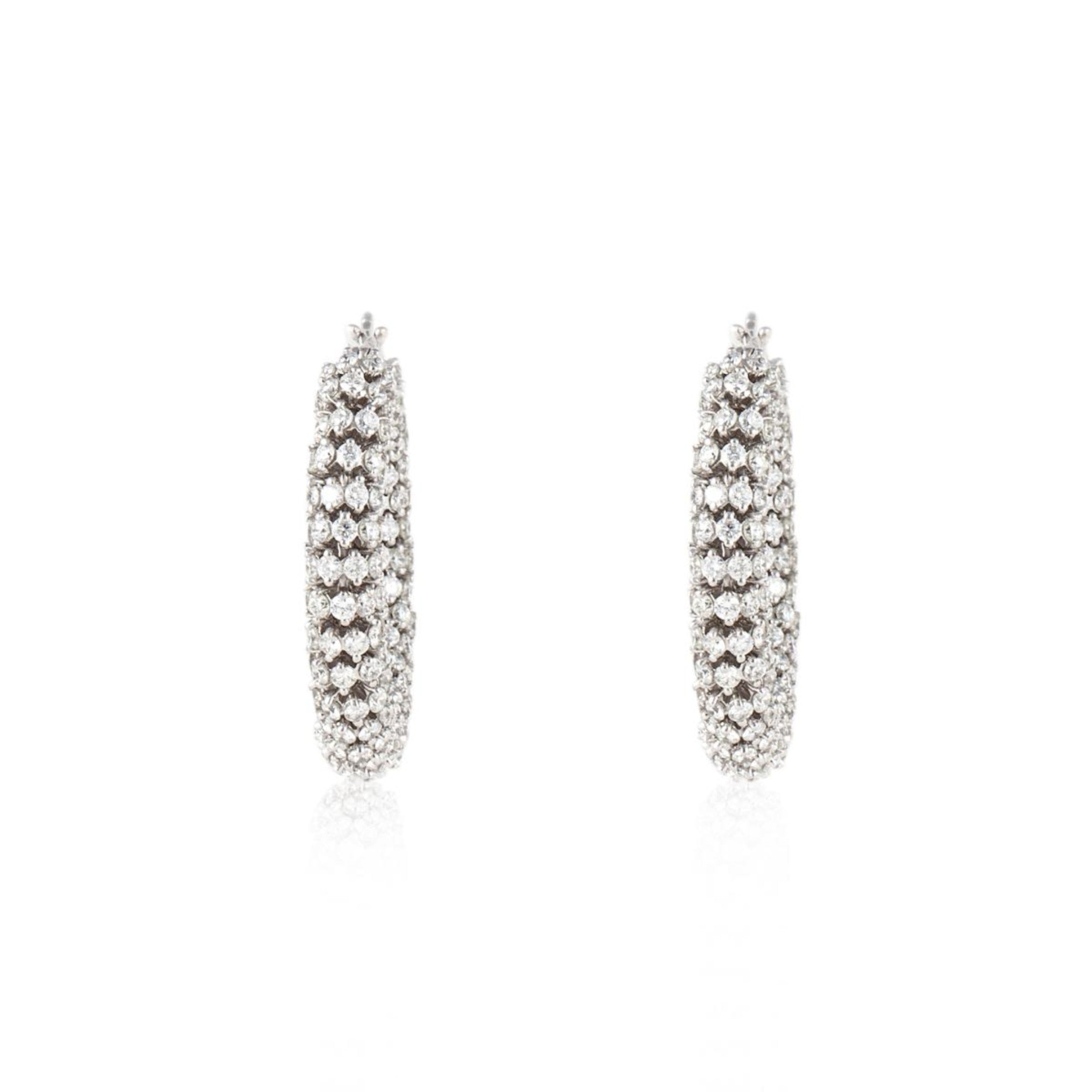 Estate 18K White Gold Rondel Diamond Hoop Earrings