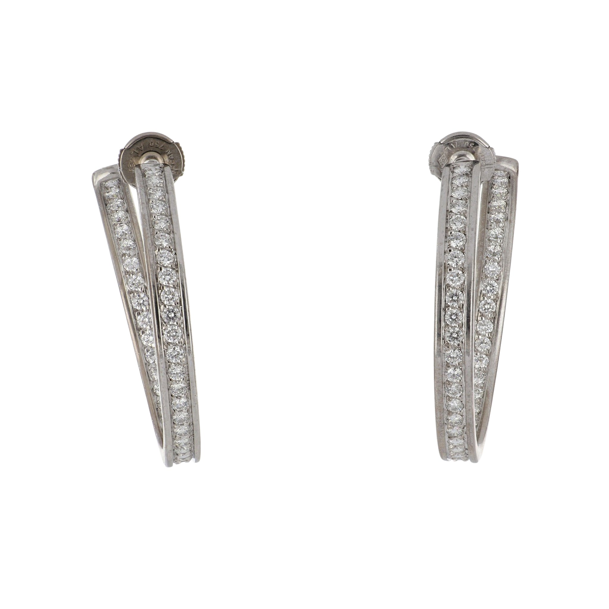 Estate Cartier 18K White Gold Inside-Out Diamond Hoop Earrings