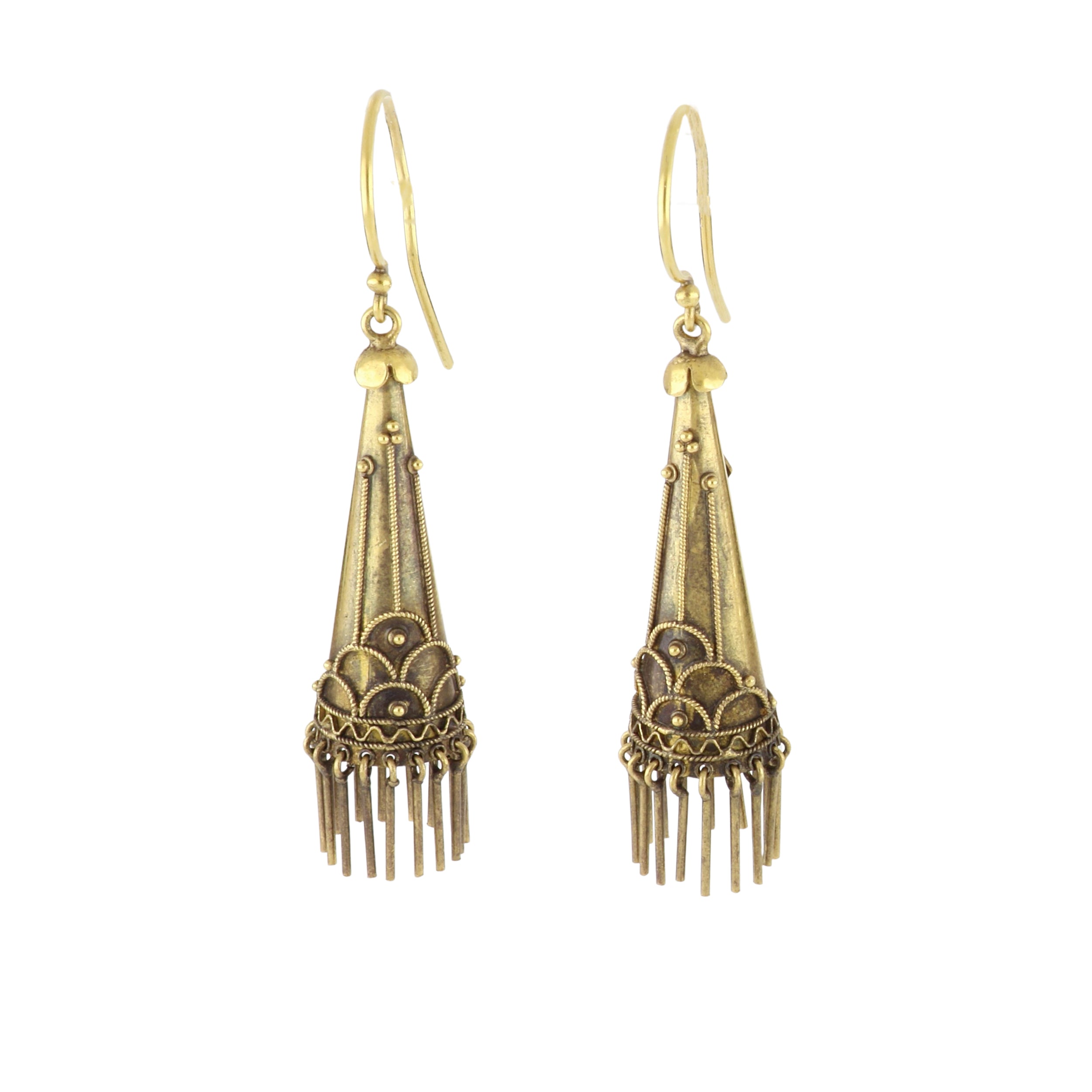 Estate Castellani 15K Gold Etruscan Revival Fringe Earrings