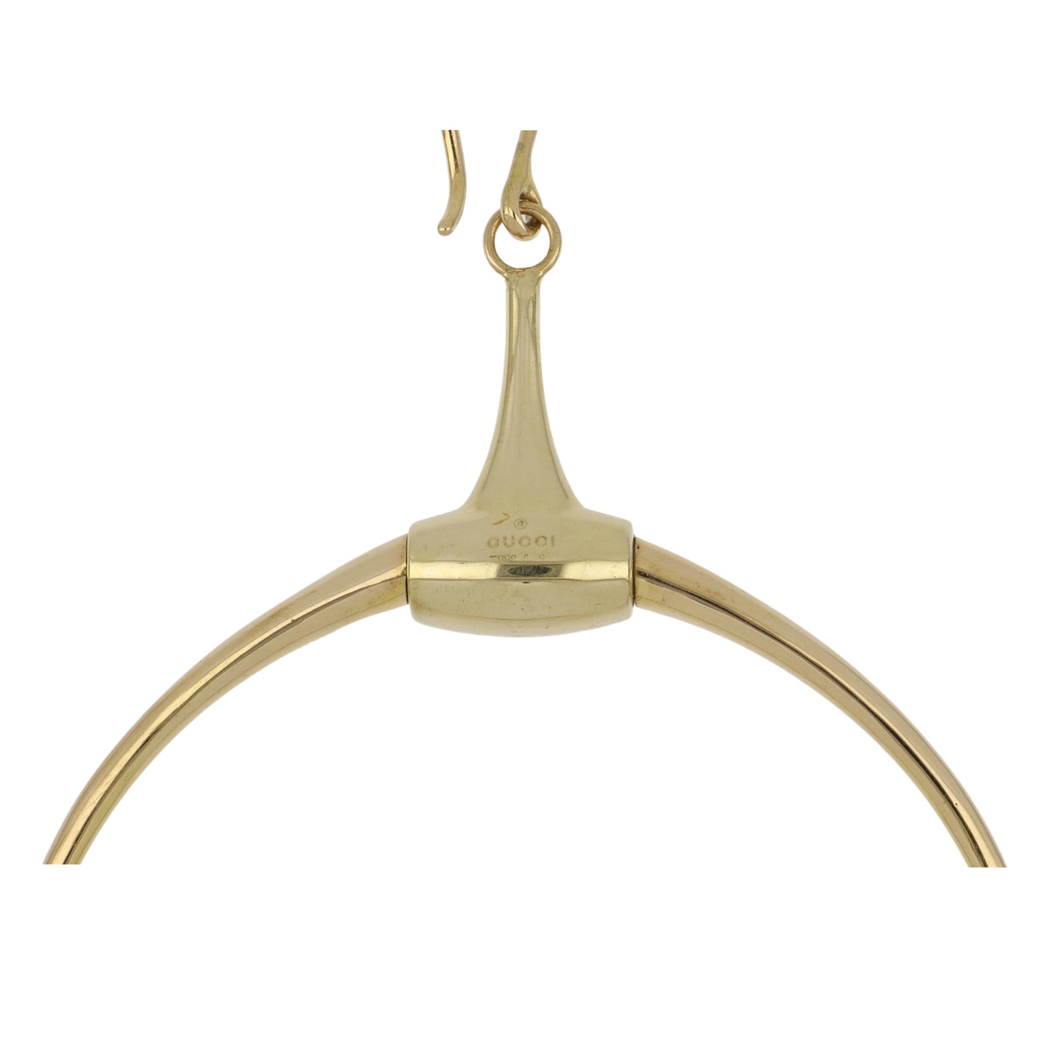 A pair of estate Gucci horse bit circle drop earrings, set in 18K yellow gold. Circa 2010.
