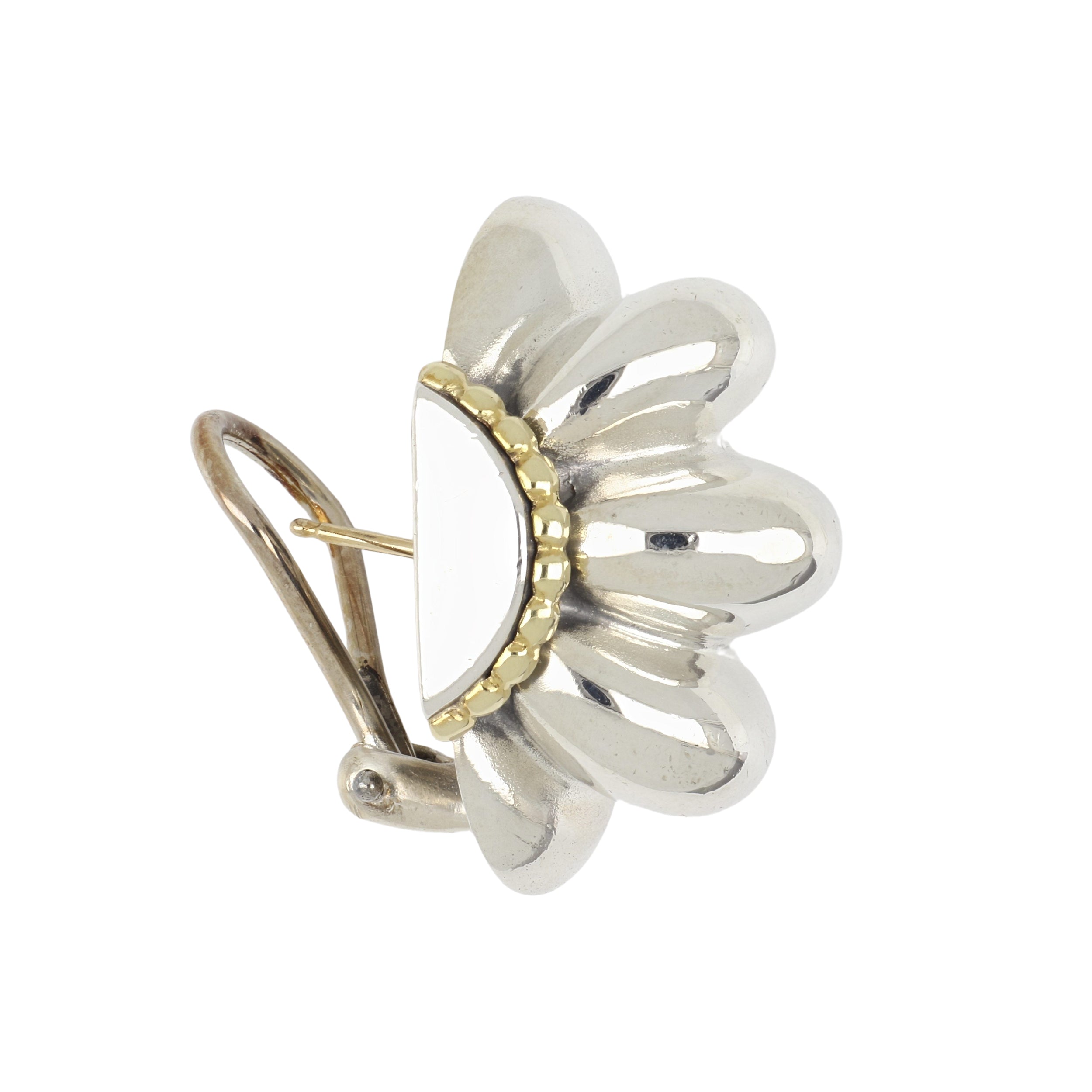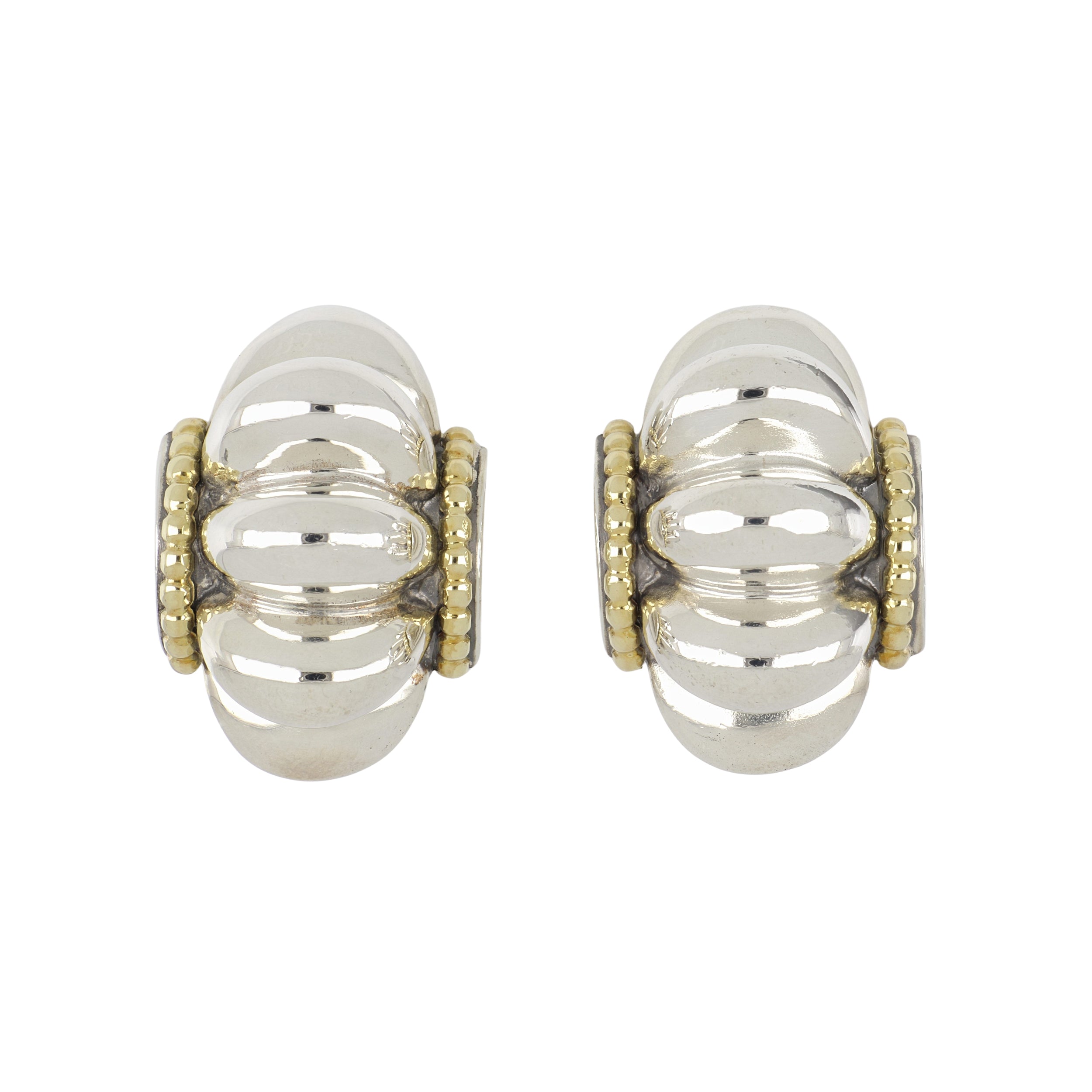 Estate Lagos Caviar Sterling & 18K Bombe Hoop Earrings