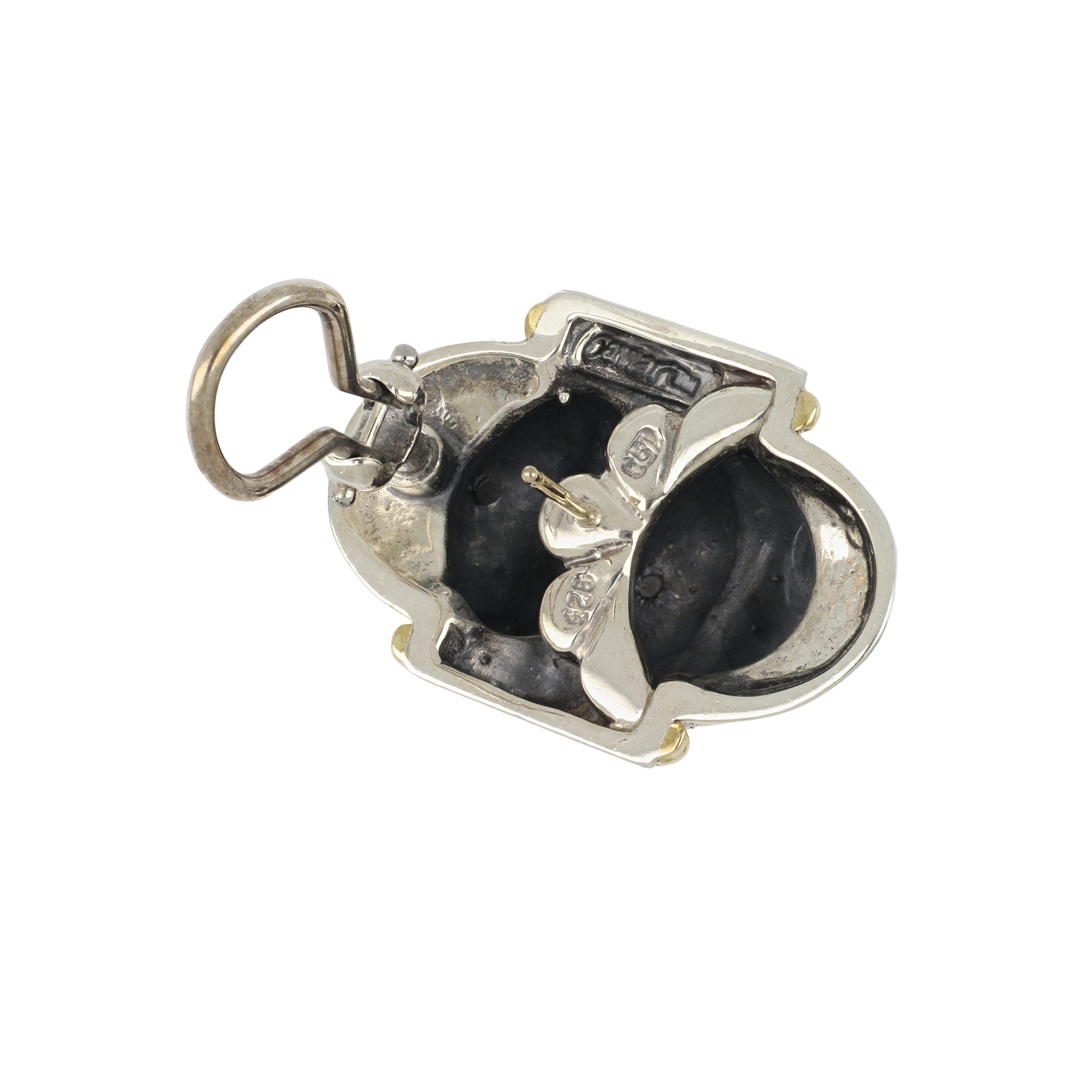 A pair of estate Lagos Caviar bombe style hoop earrings in sterling silver with 18K yellow gold detail. Circa 2000.