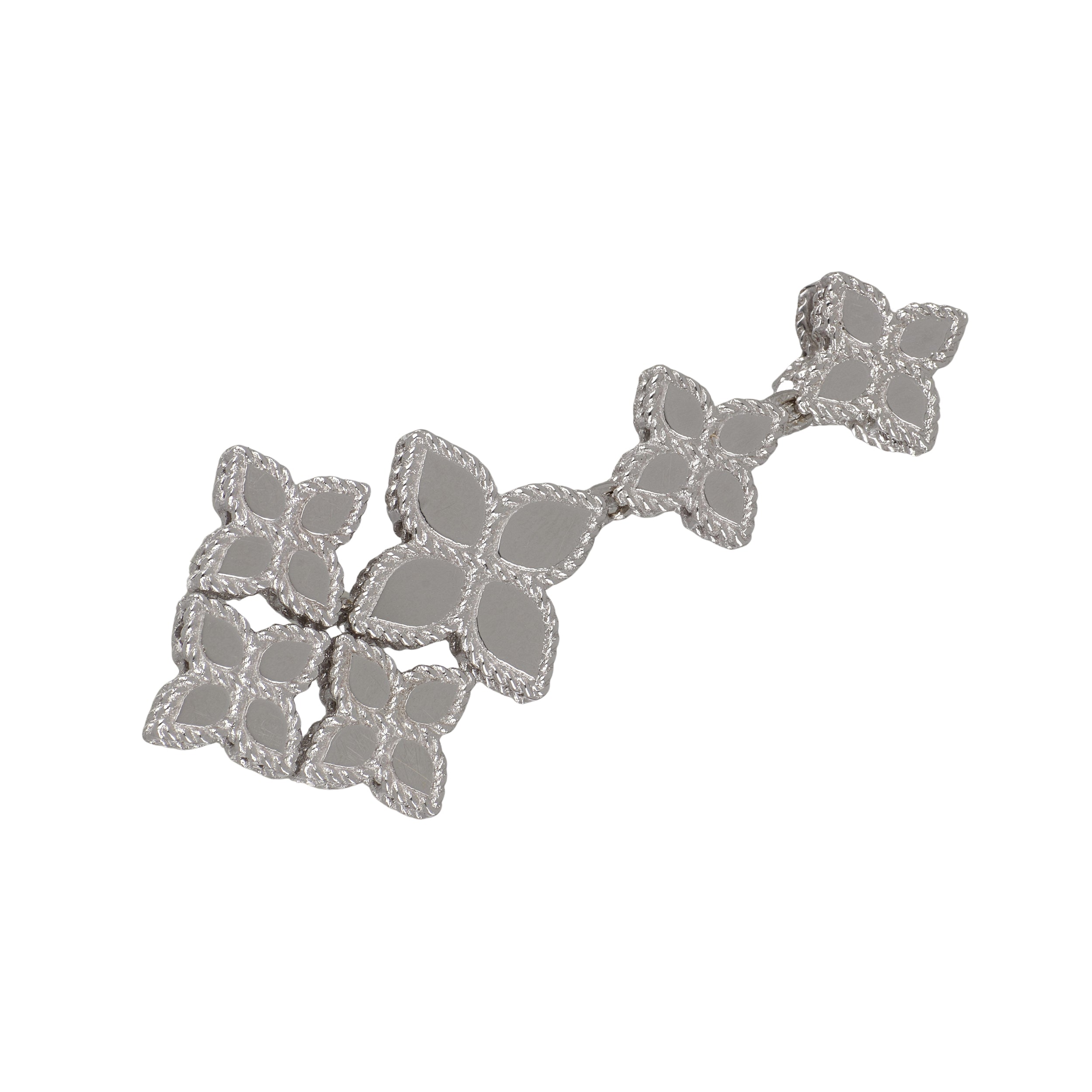 A pair of estate modern, Roberto Coin "Venetian Princess Collection" triple drop mirrored earrings in 18k white gold.