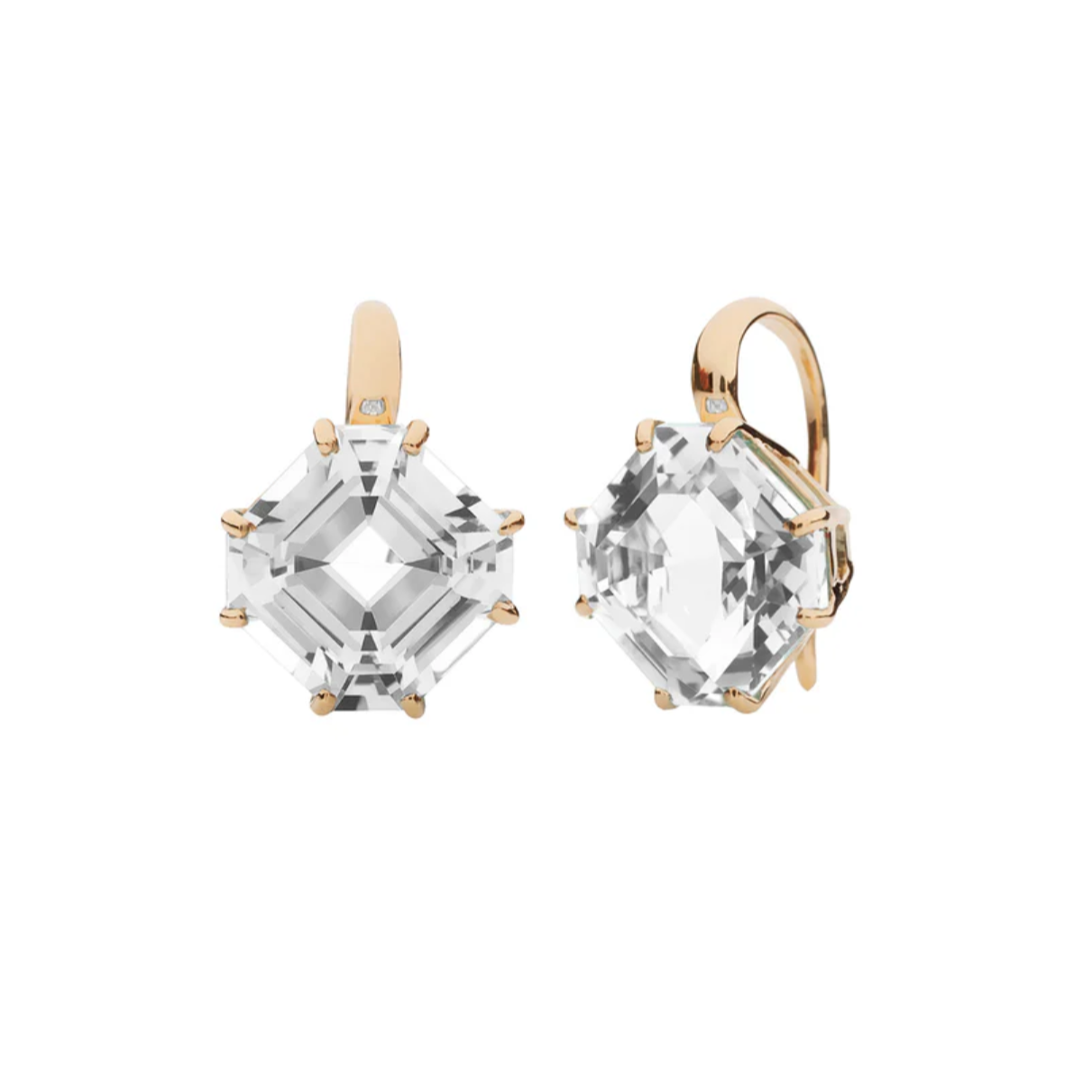 Goshwara 18K Gossip Rock Crystal Hexa Leverback Earrings
