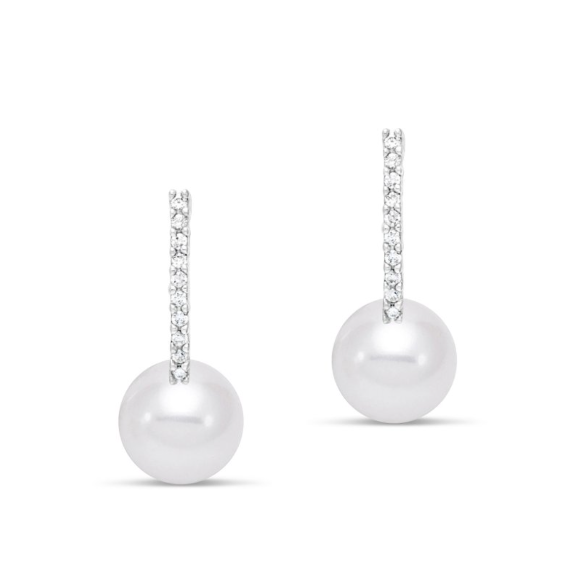 Mastoloni 14K Gold Freshwater Pearl Drop Earrings with Diamonds