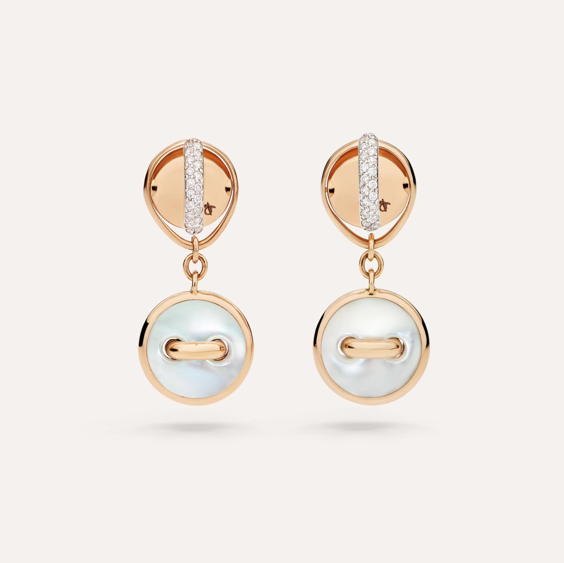 A pair of Pomellato malachite and mother-of-pearl Pom Pom Dot reversible earrings diamonds, set in 18K rose gold.