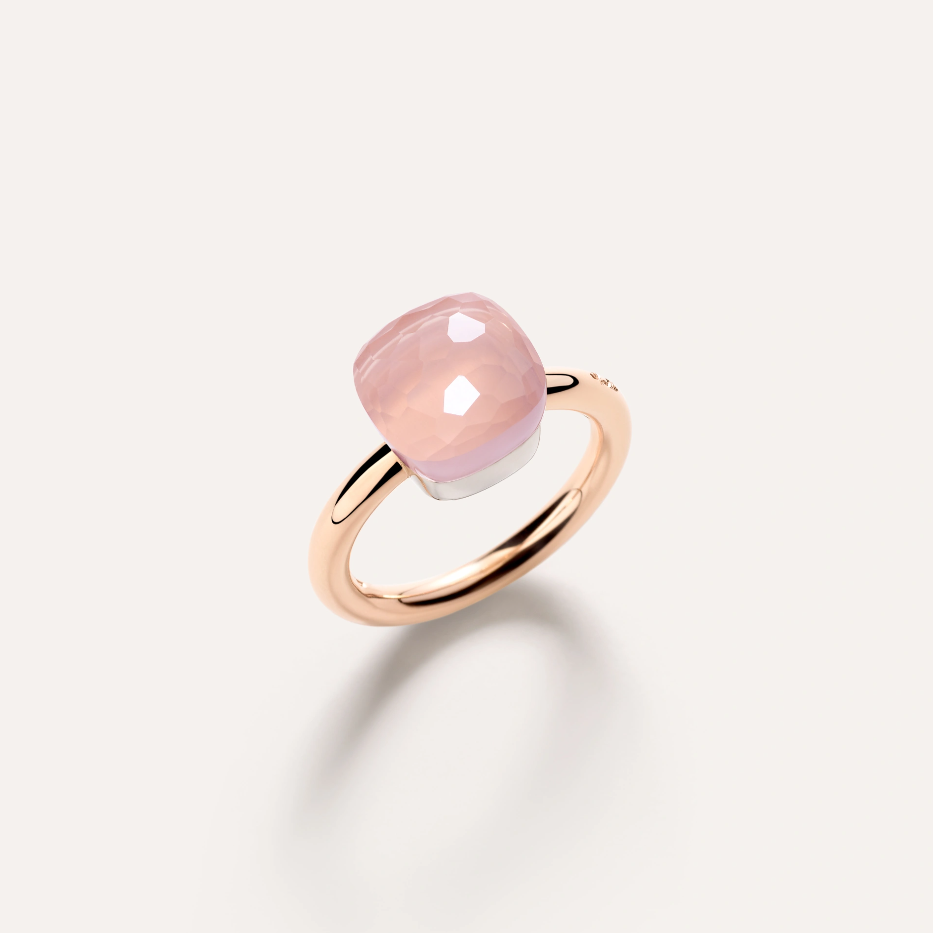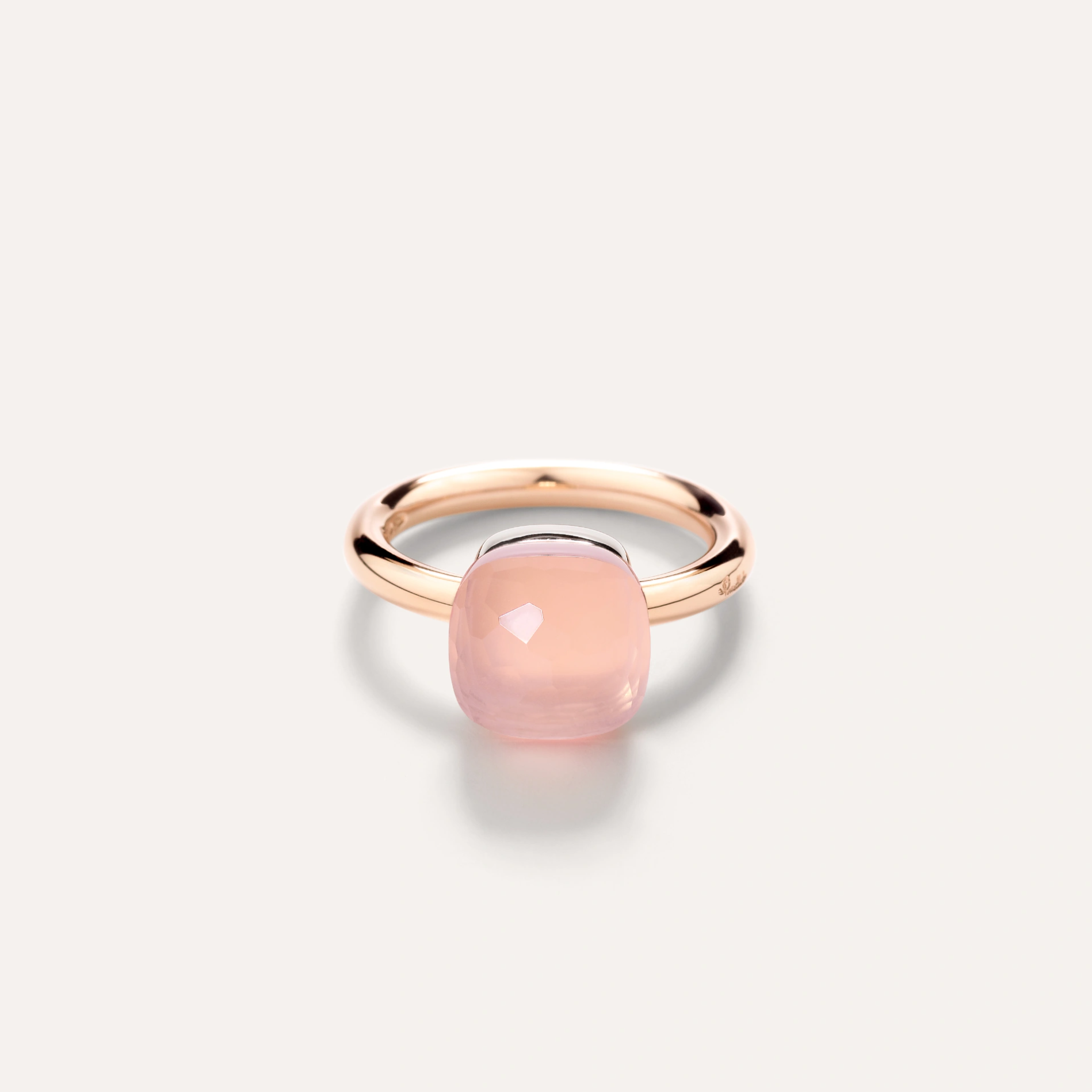 A Pomellato Nudo Classic rose quartz ring, set in 18K white and rose gold.