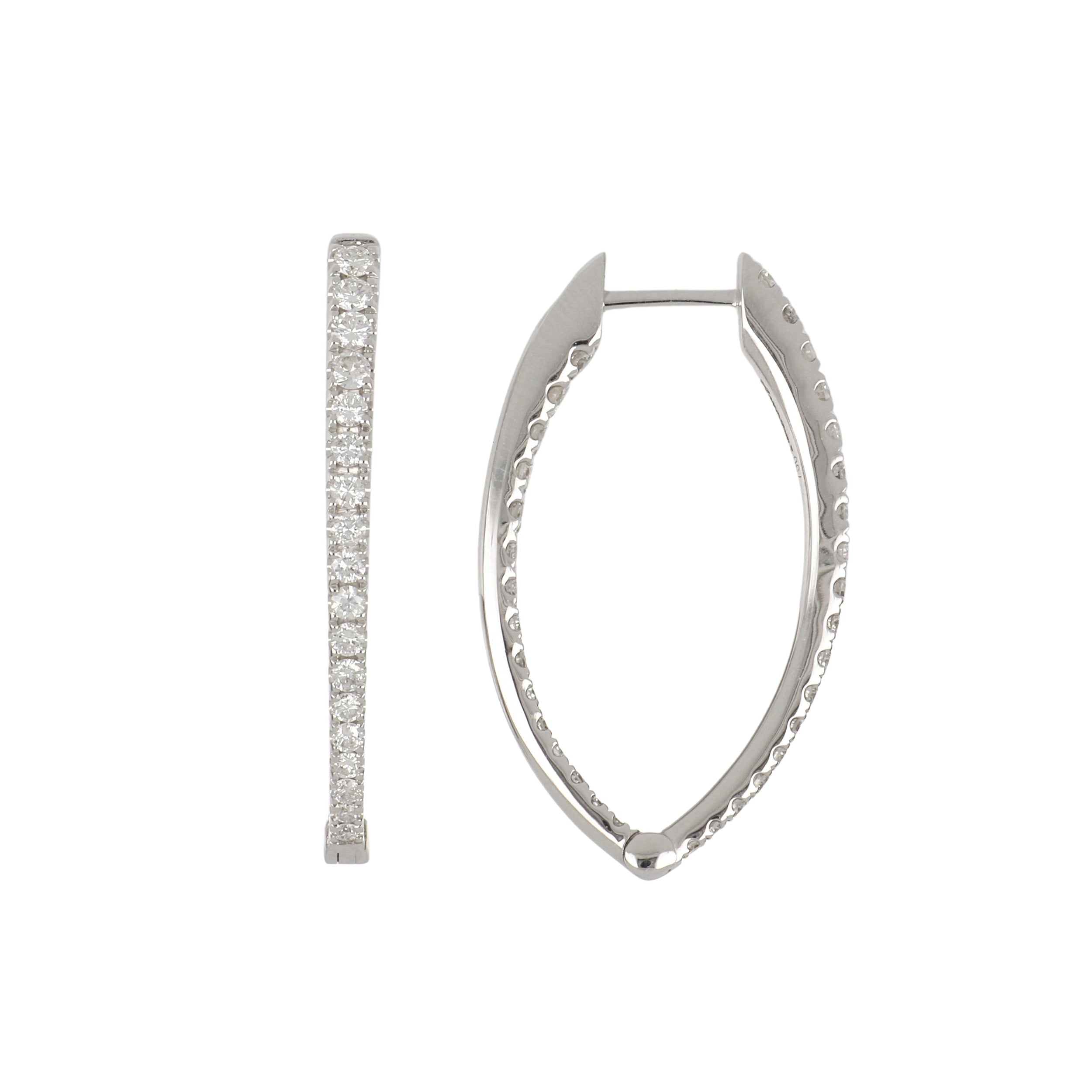 Tenenbaum 18K White Gold Diamond Tapered Hoop Earrings