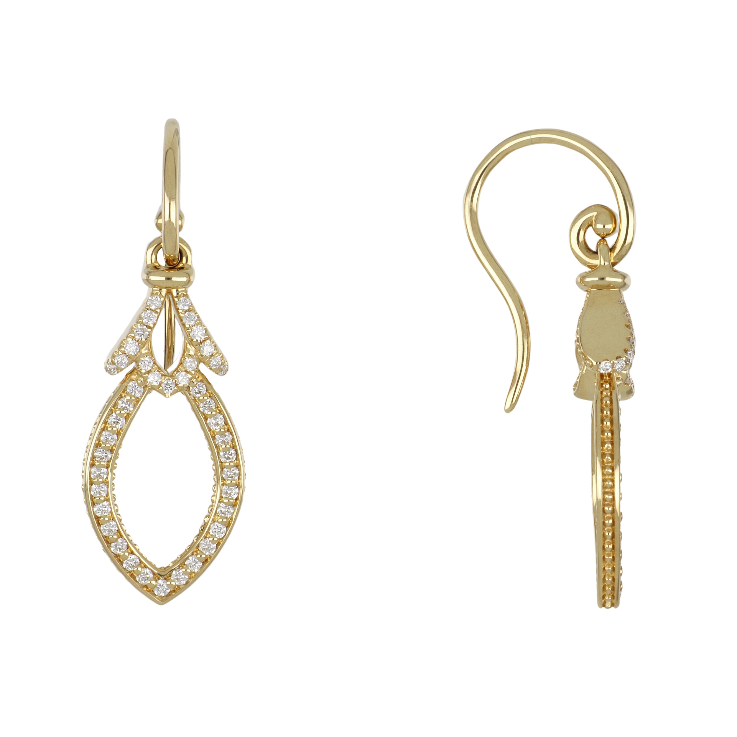 A pair of Verragio diamond toggle drop earrings in 18K yellow gold.