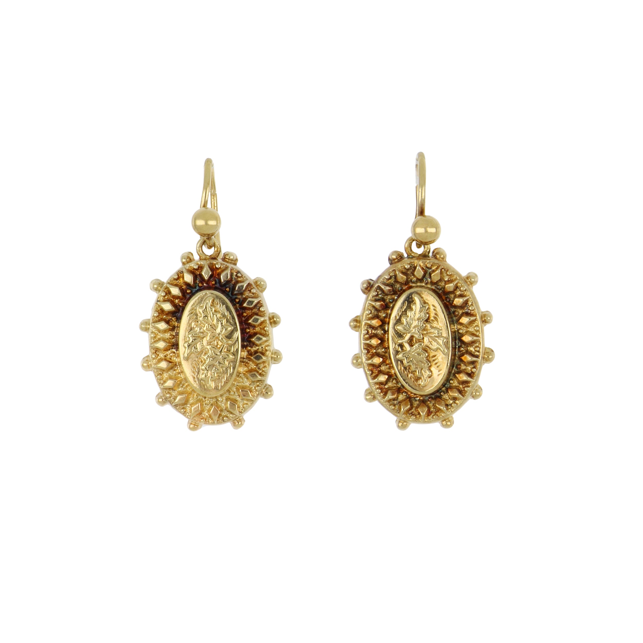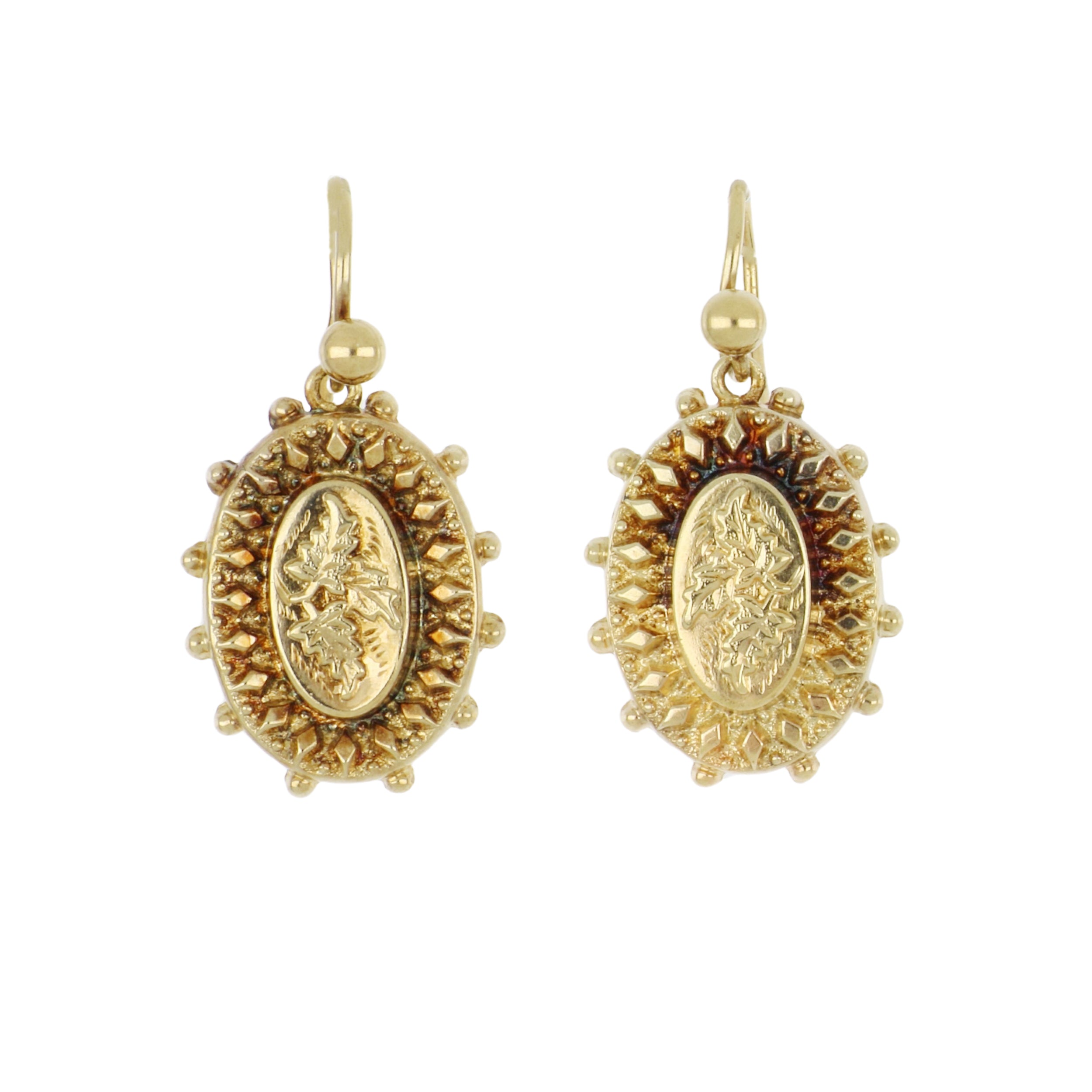 Victorian 18K Gold Oval Leaf Motif Earrings