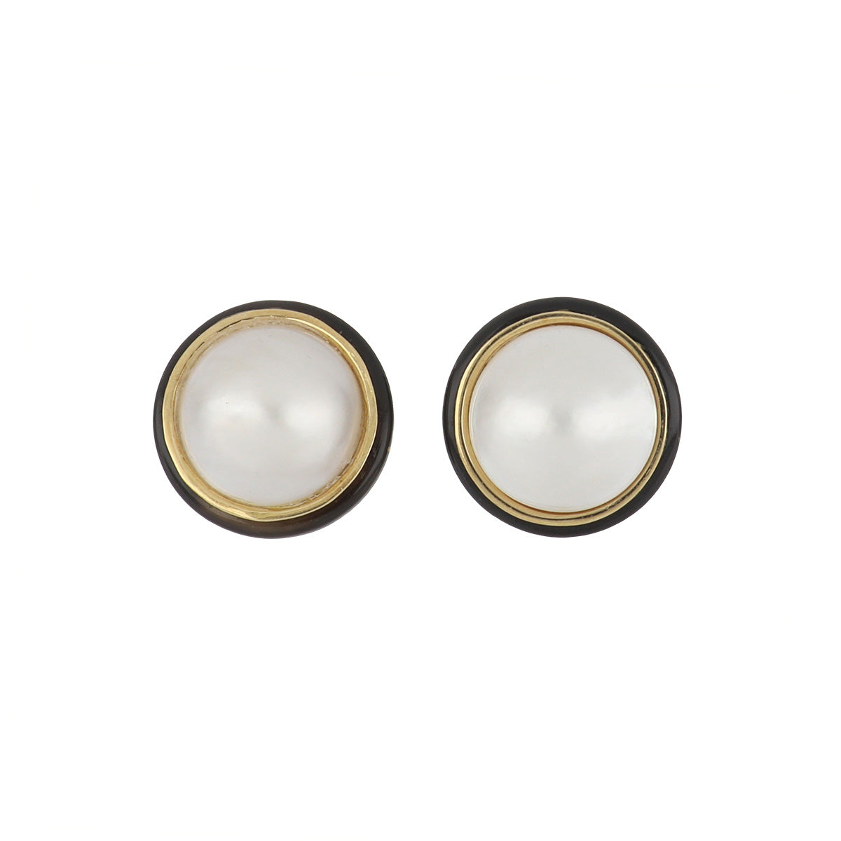 Vintage 1980s 14K Gold Mabé Pearl Button Earrings with Onyx