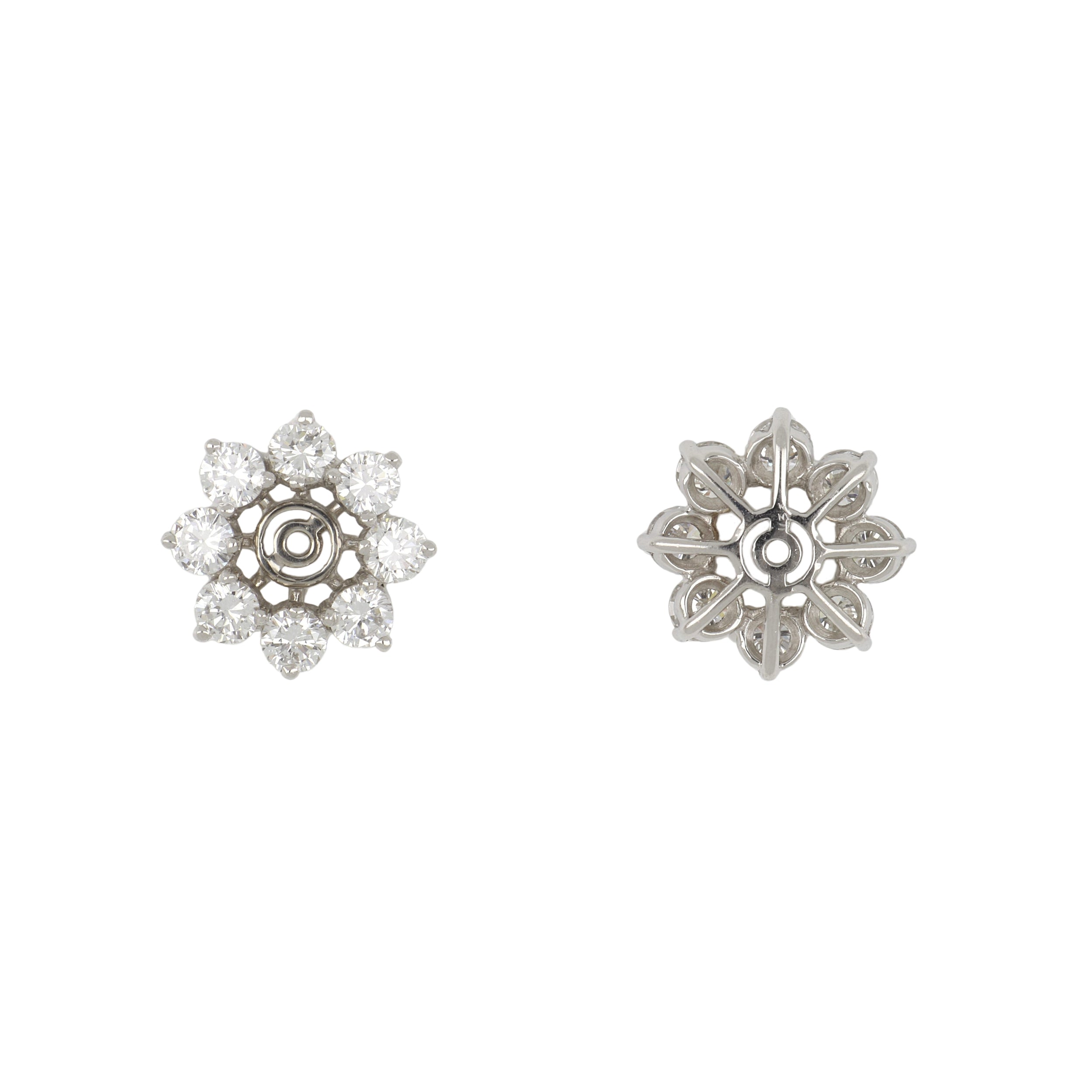 A pair of vintage Tiffany & Co. round brilliant-cut diamond stud jackets set in platinum. Accompanied with papers. Circa 1980.