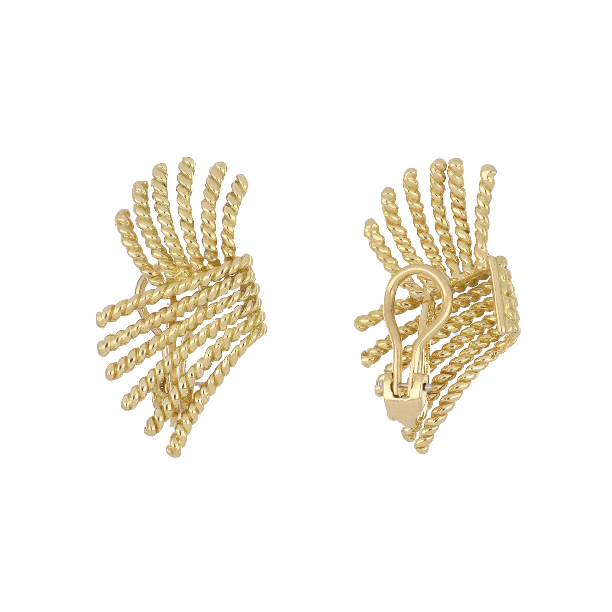 A pair of vintage Tiffany & Co. Schlumberger 18K yellow gold V-Rope earrings. Circa 1990.