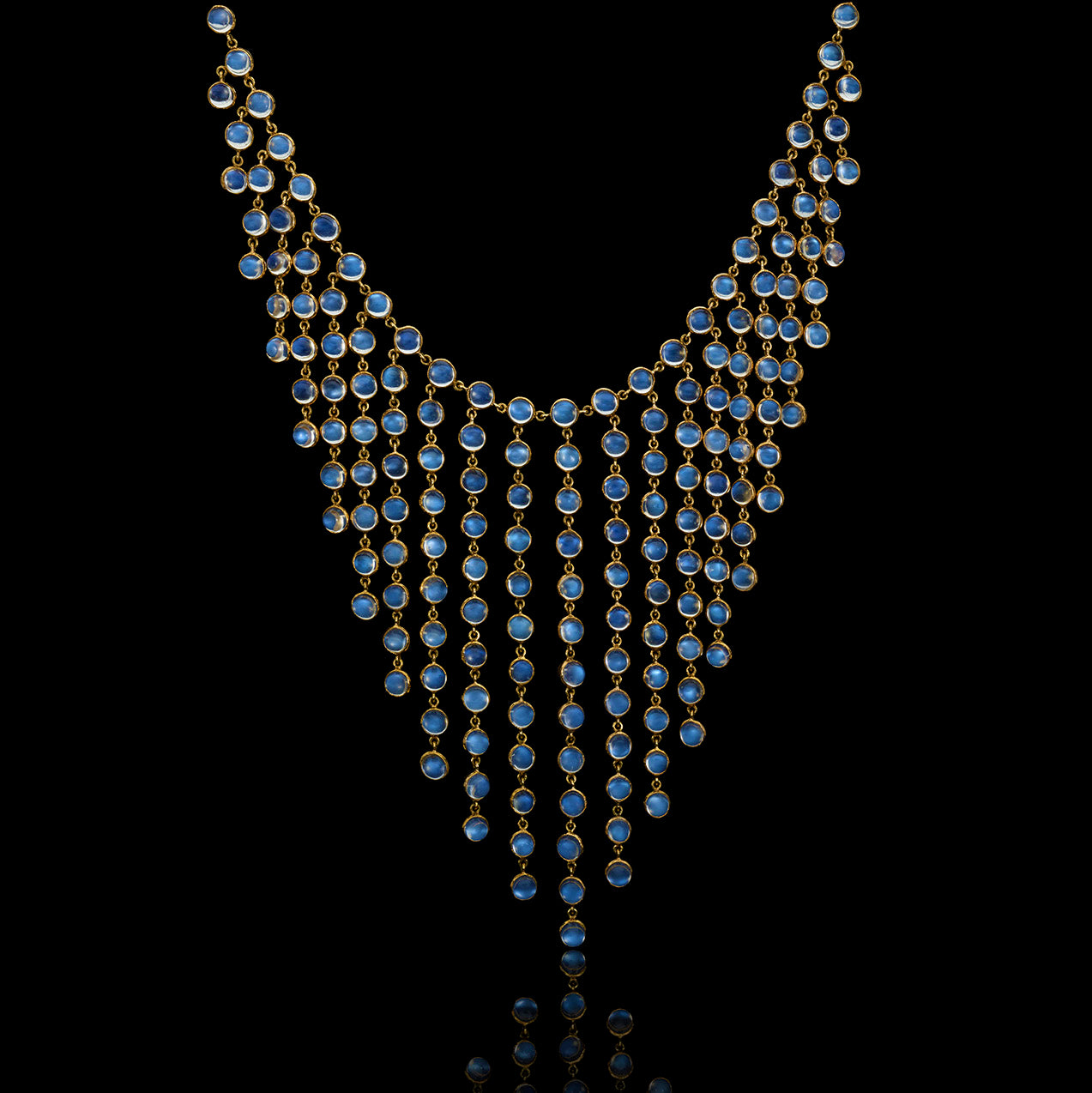 An Edwardian 18K yellow gold moonstone fringe necklace. Circa 1915.