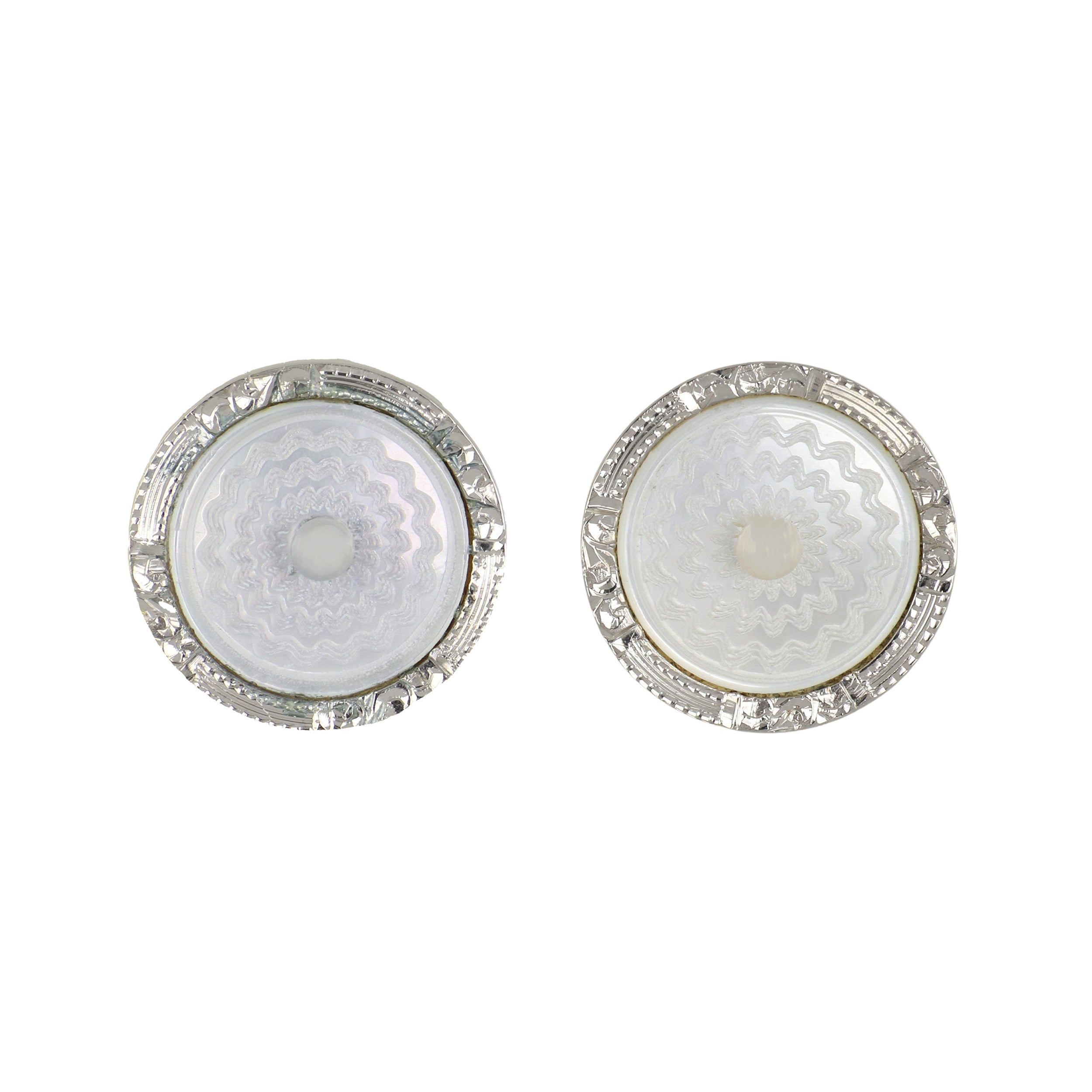 Edwardian Mother-of-Pearl Engraved Button Earrings