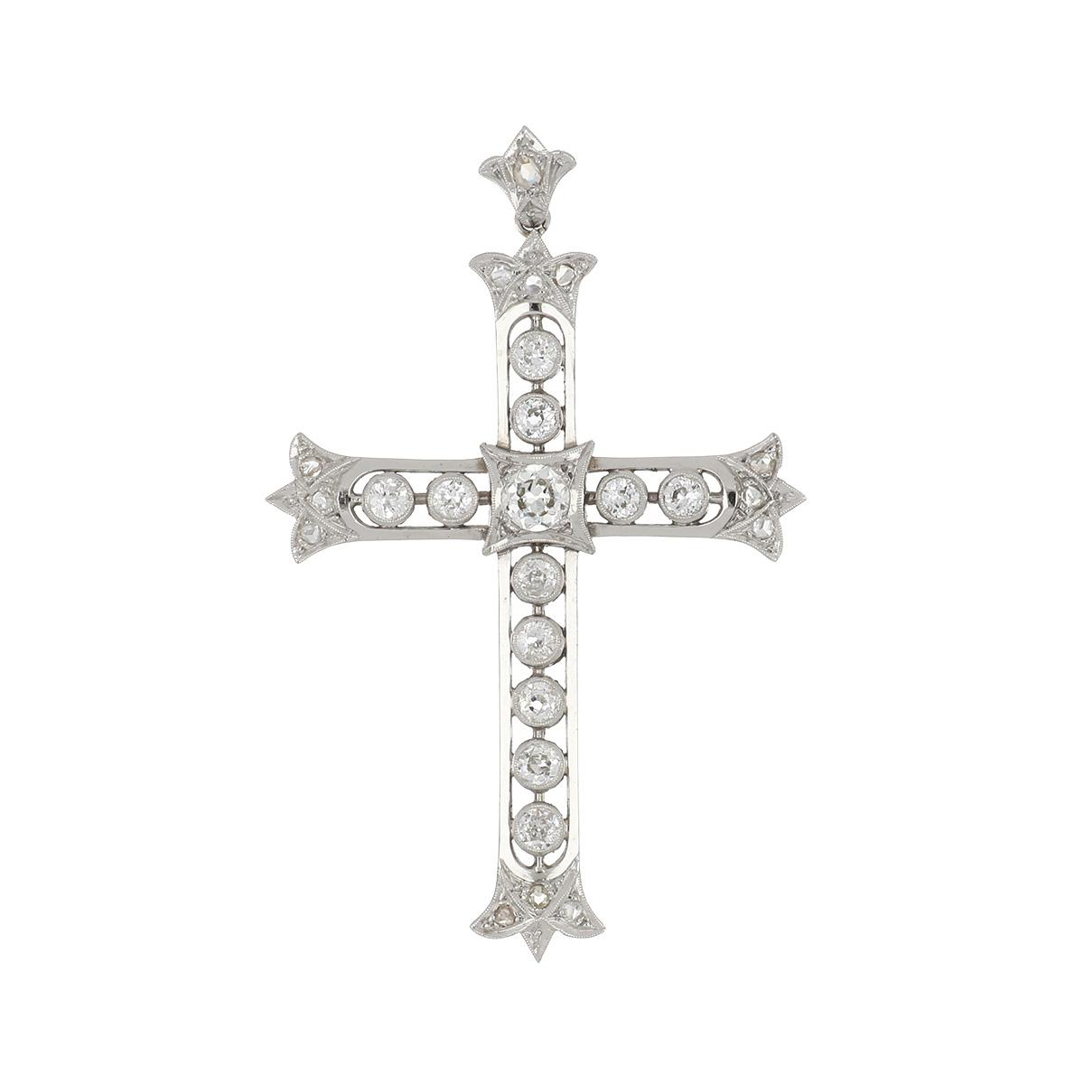 An Edwardian Old European-cut and rose-cut diamond cross pendant set in platinum. Circa 1910.