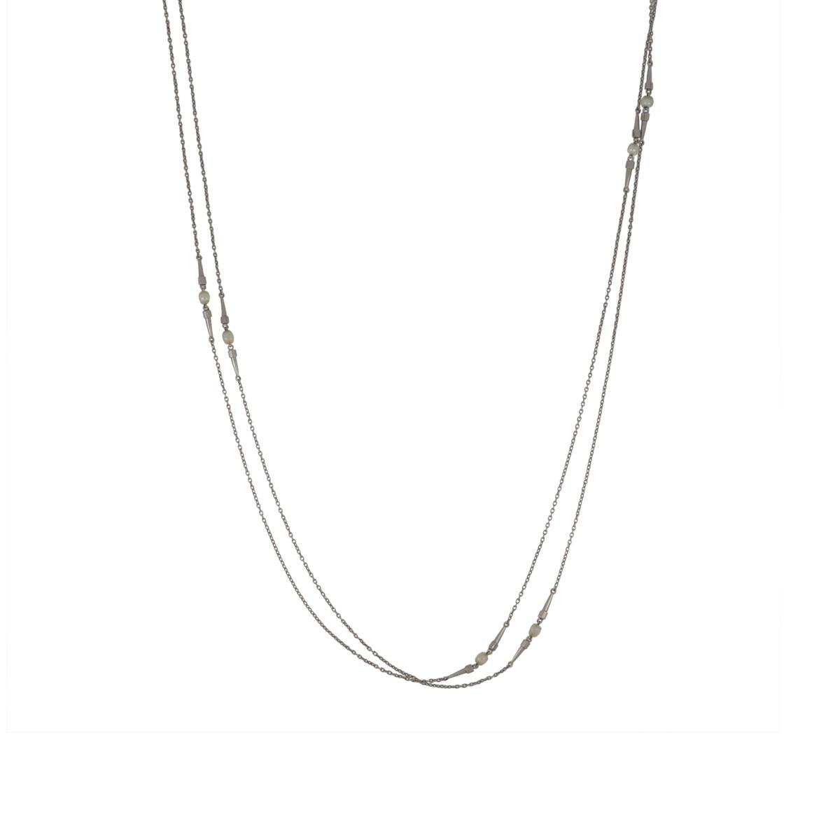 Edwardian Platinum Seed Pearl Longuard Necklace
