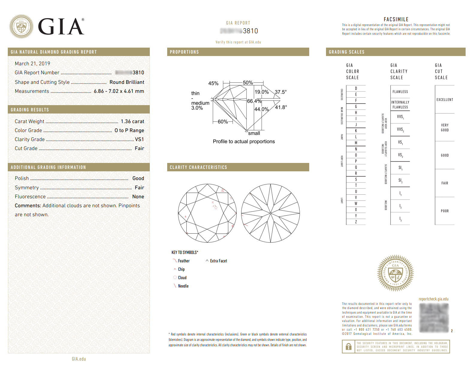 1 old-european cut diamond: 1.36 carat, O-P color, VS1 clarity