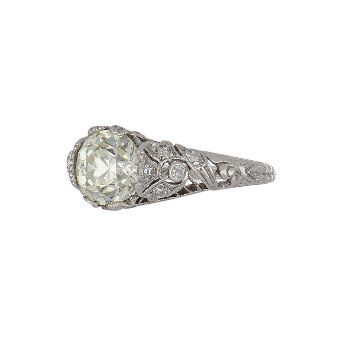 An Art Deco platinum old-European cut diamond engagement ring. Circa 1920.
